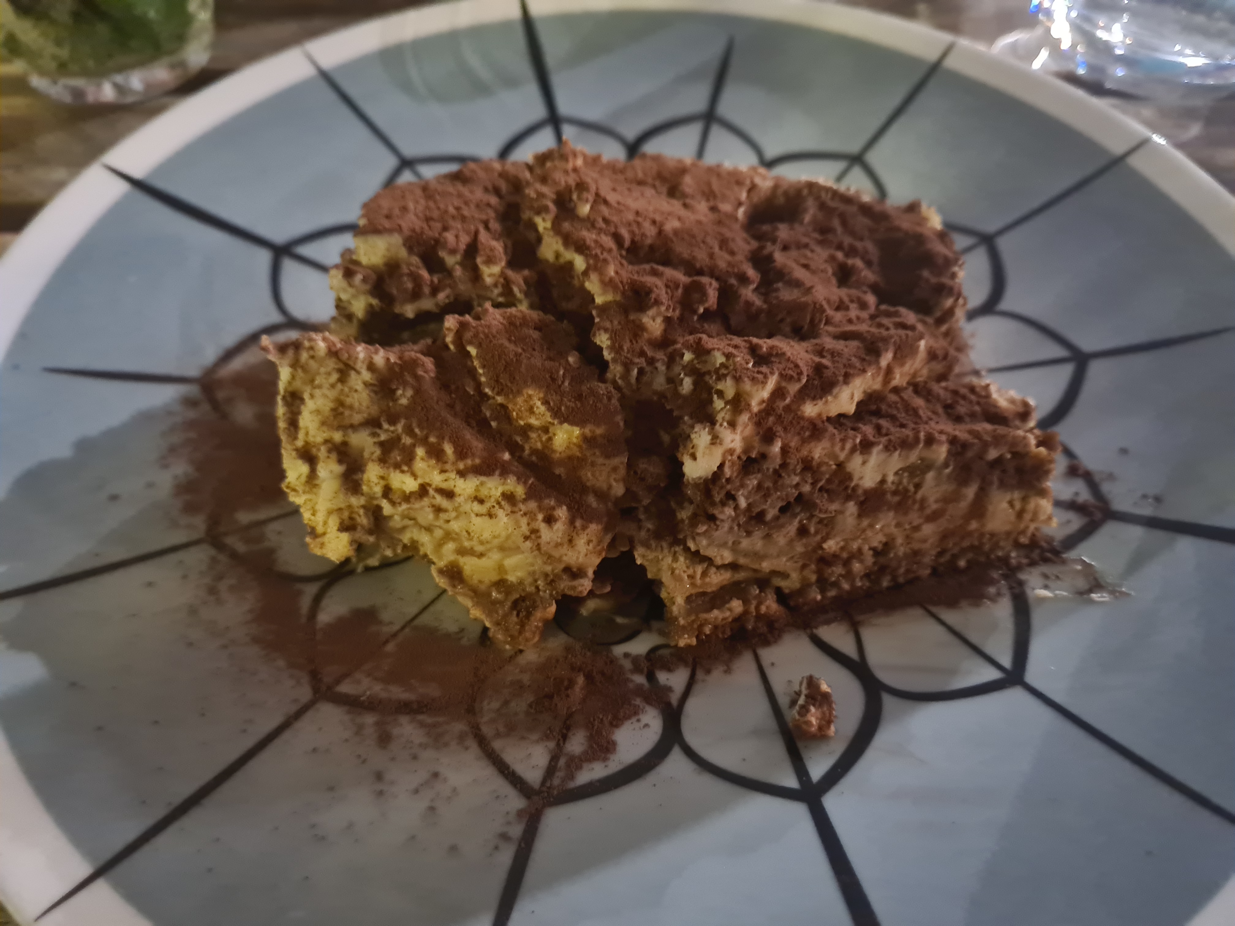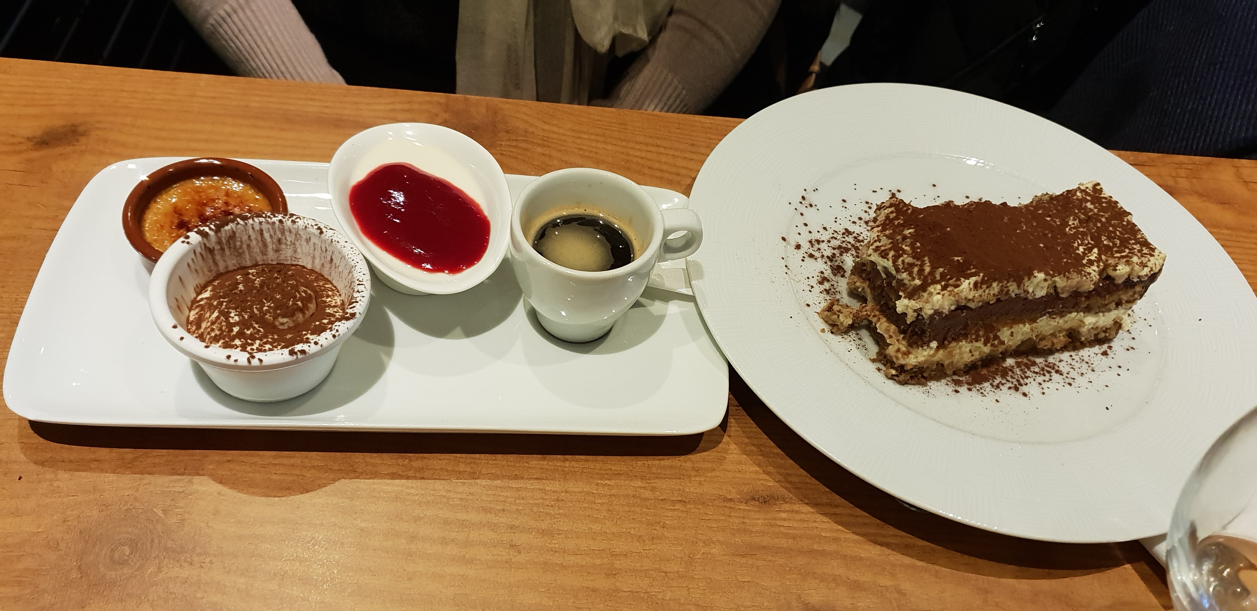 Repas à base de produits typiquement italiens. Tiramisu bon mais manque la présentation