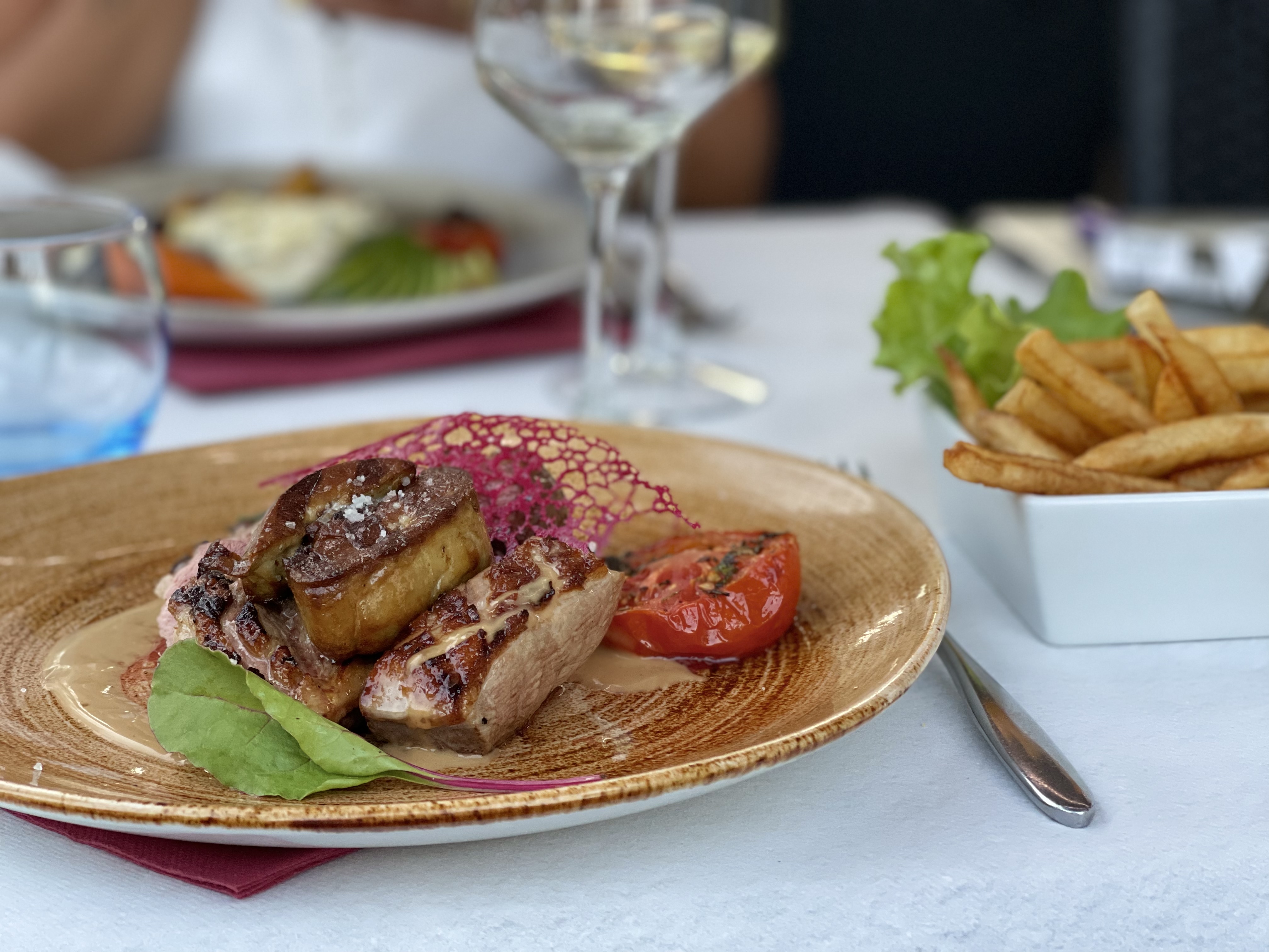 Restaurant chaleureux discret et service au top, organisation d l’équipe impeccable, déroulement rapide sans être pressé ! Un magnifique moment en terrasse avec petite chaleur estivale ! Serveur et serveuse souriante aimable et professionnels ! Je recommande