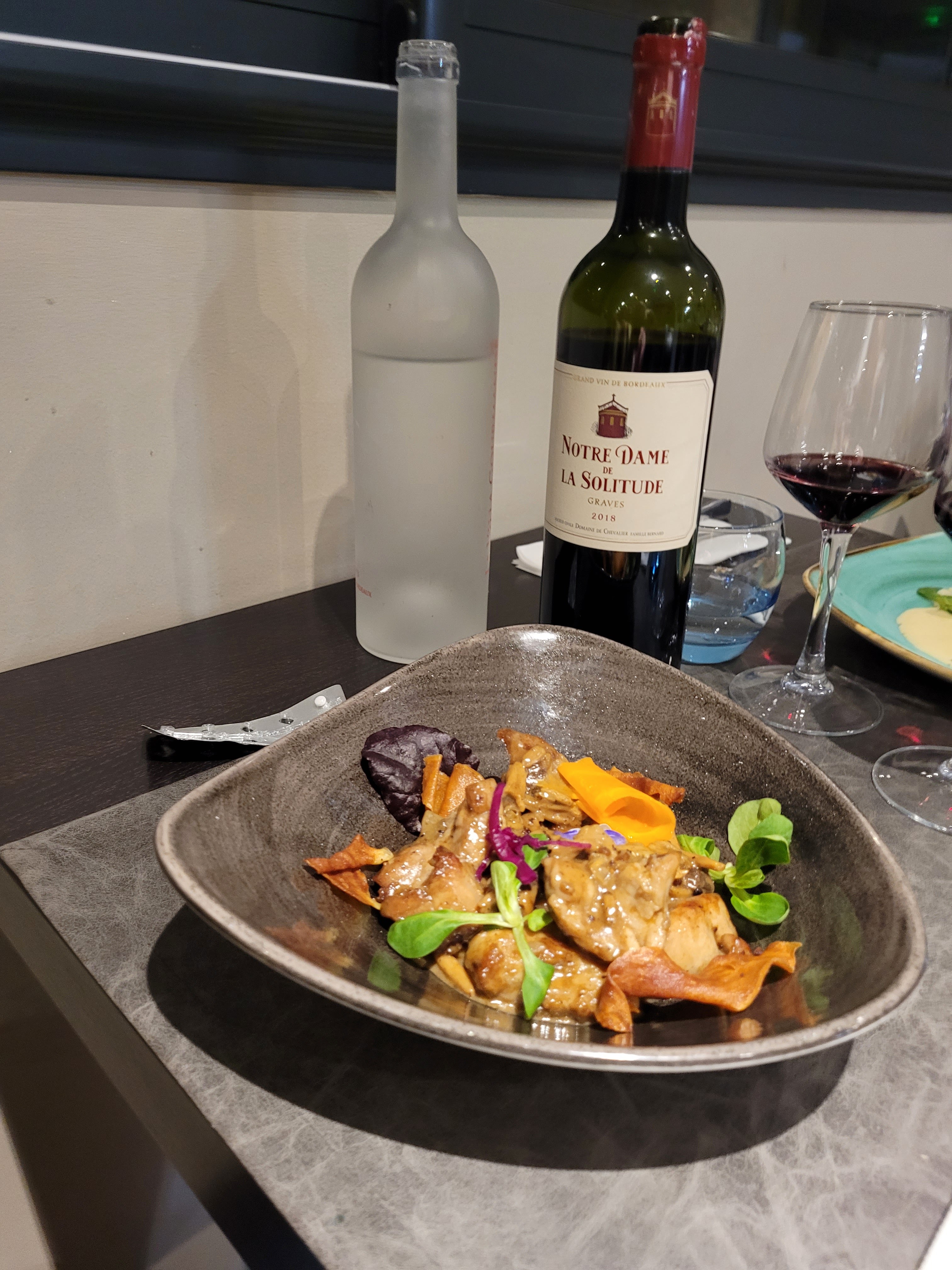 super restaurant! de vrais produits frais. accompagnements travaillés et variés. explosions de saveurs dans le dessert! tarif très correct. rien à envier aux confrères de bordeaux, et au moins l'enivrement est calme et on peu se garer facilement.