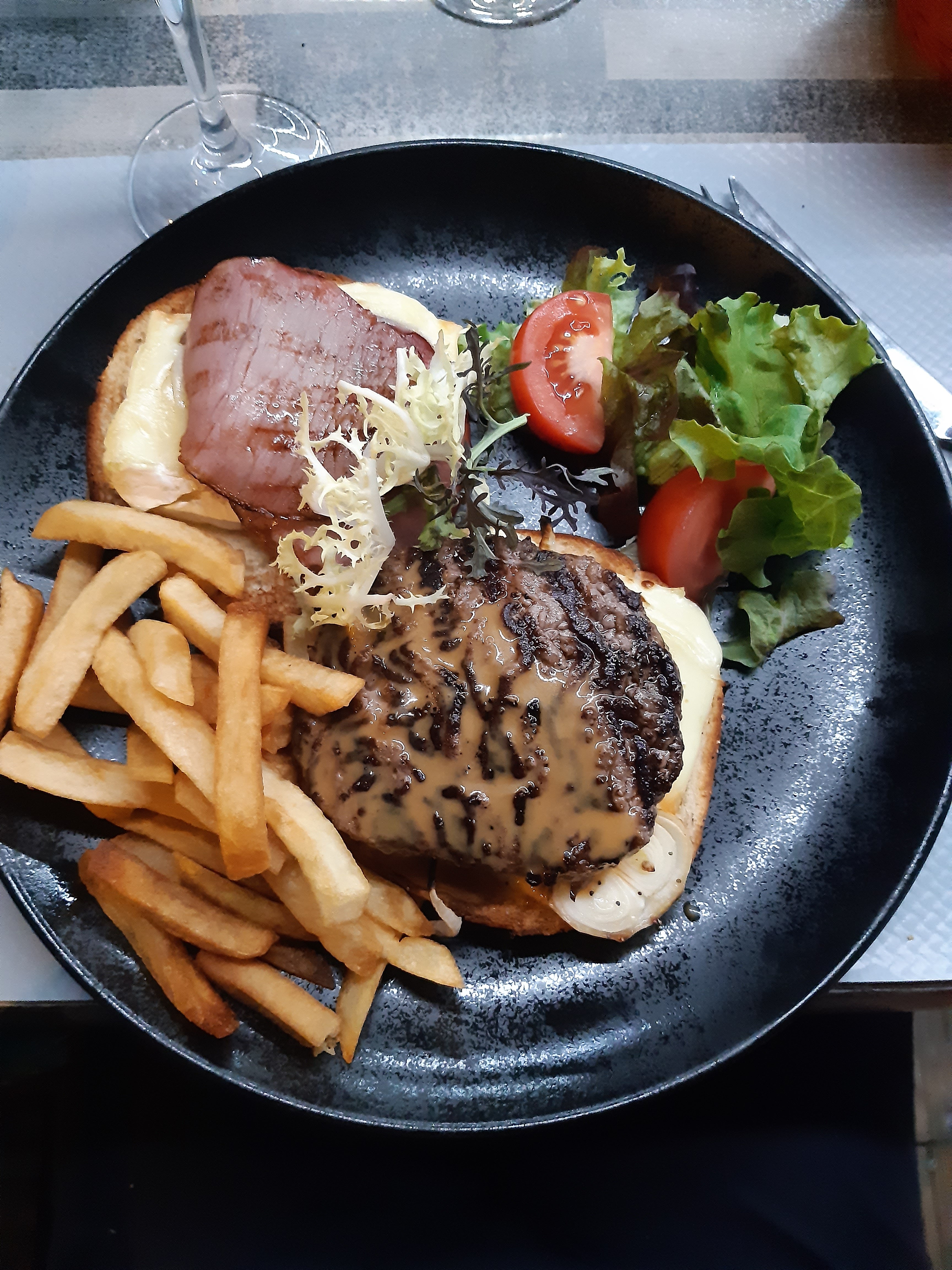 Très conviviale. La viande est de très bonne qualité et parfaitement cuite. Les frites “maison” sont excellentes. Le service est rapide, efficace et convivial mais pas pressant. Les burgers gourmands ont fait le bonheur des enfants.