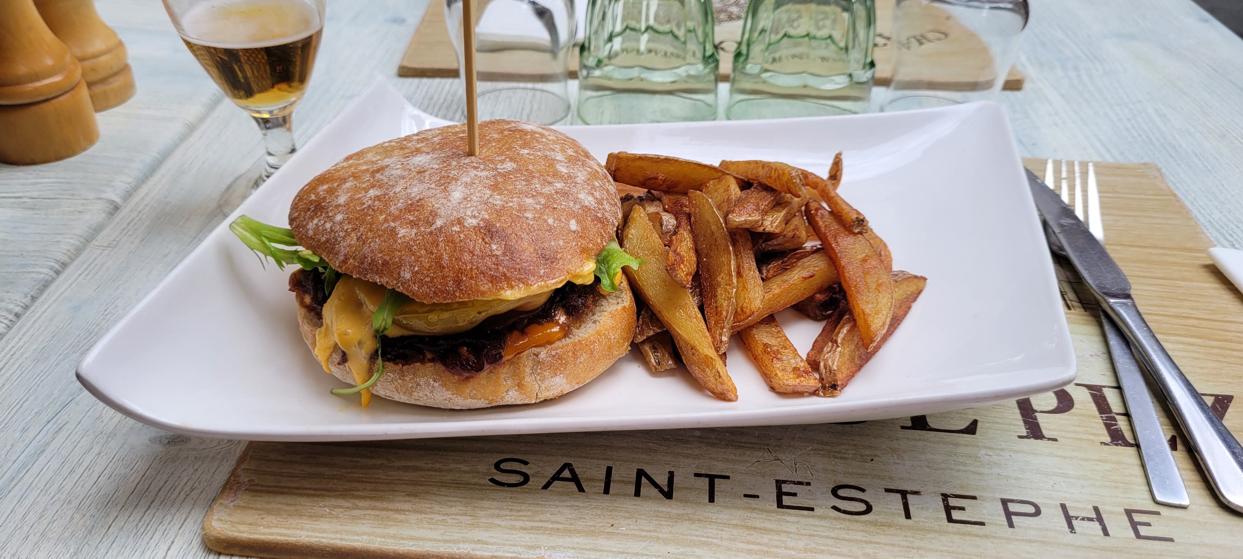On a mangé sur la terrasse en plein soleil...repas super bon et raffiné...moelleux au chocolat exquis et très bien présenté. Je recommande vivement !