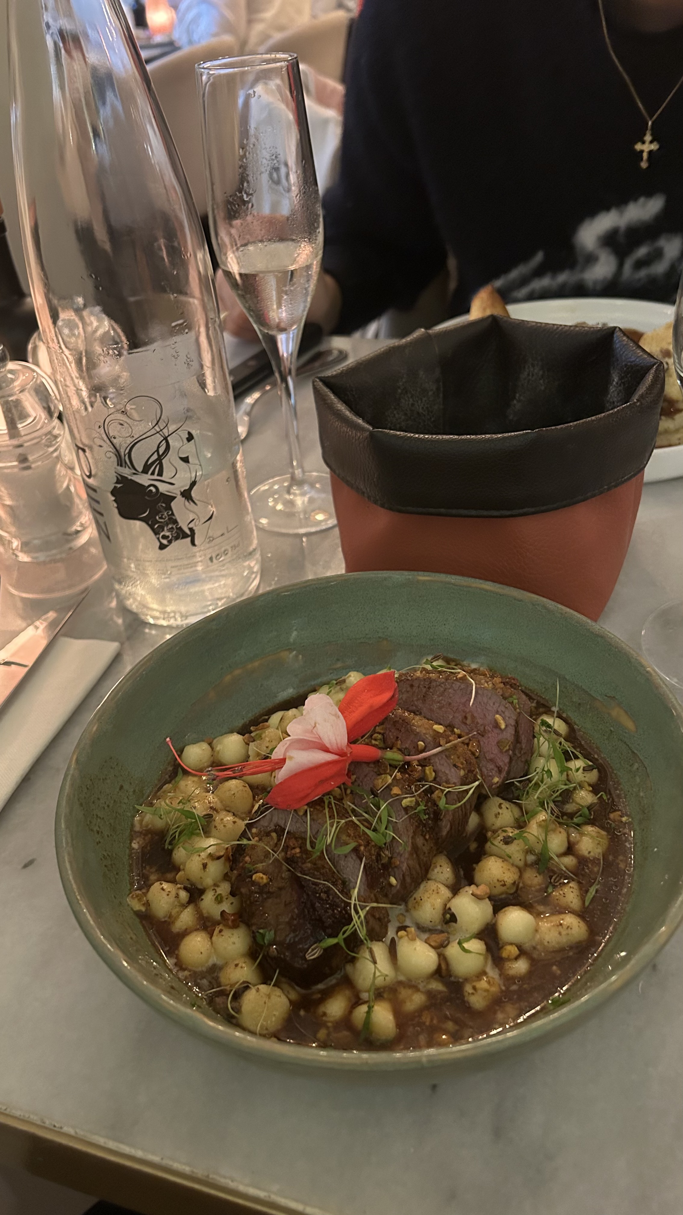 Très beau restaurant ,très bien accueilli par Elie ,repas délicieux mais addition assez salée,49 euros pour une viande ou encore 7 euros la bouteille d'eau plate 75cl 😬!! Je recommande malgré les prix ce très bon restaurant !!!