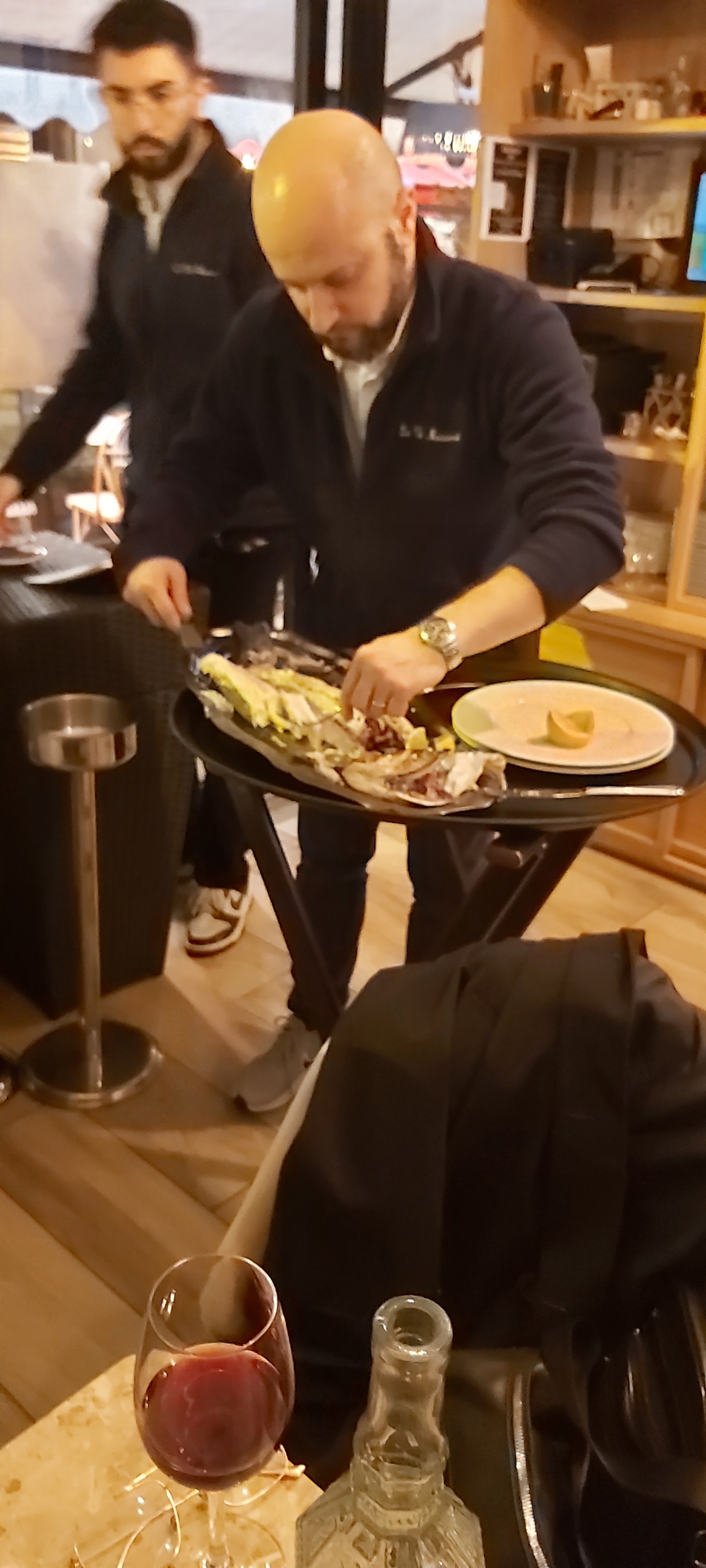 Moment très sympathique, restaurant bien situé, succulent, poisson découpé en direct très agréable, serveurs aux petits soins