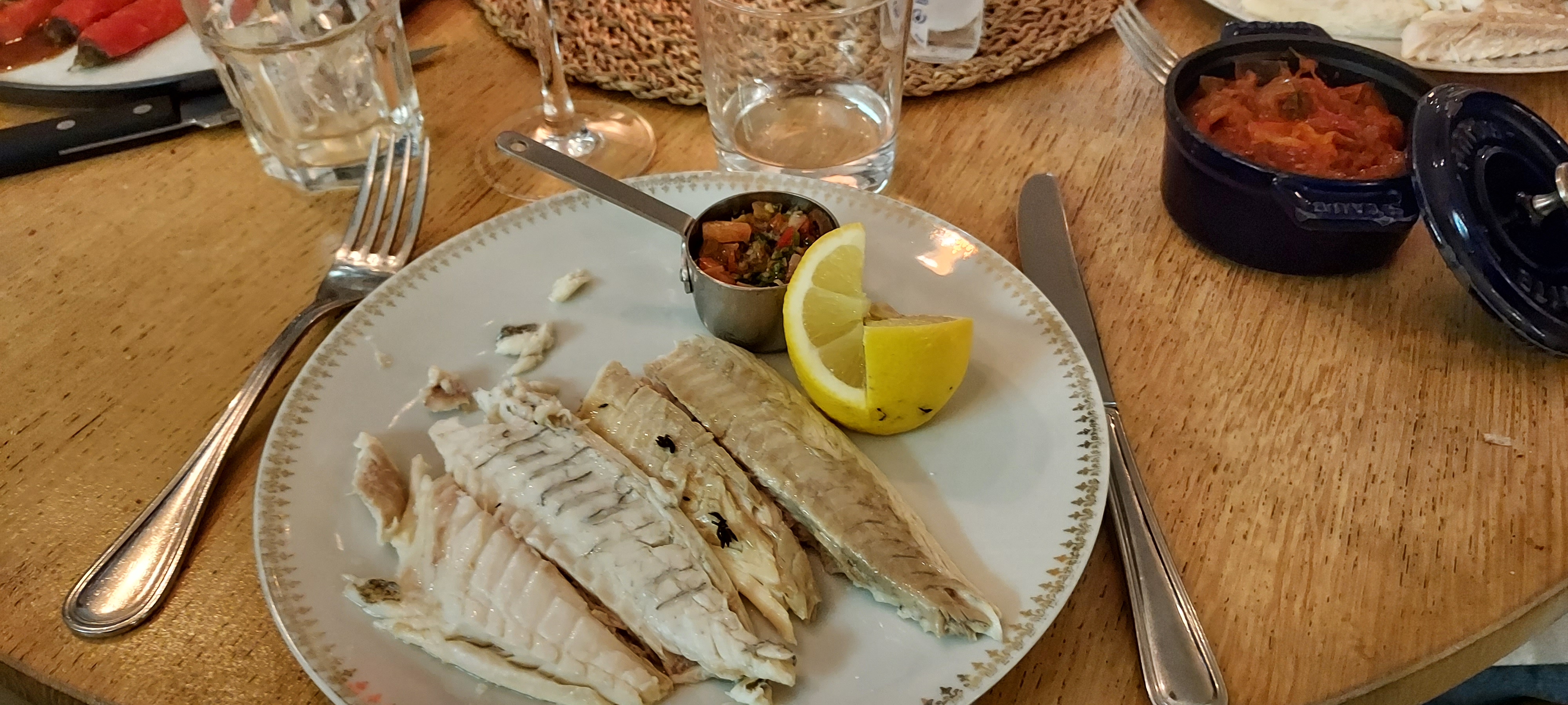 C’est rare de manger aussi bien dans une rue touristique. La daurade était succulente merveilleusement découpée au guéridon par Déborah, au sourire communicatif. Nous y retournerons.