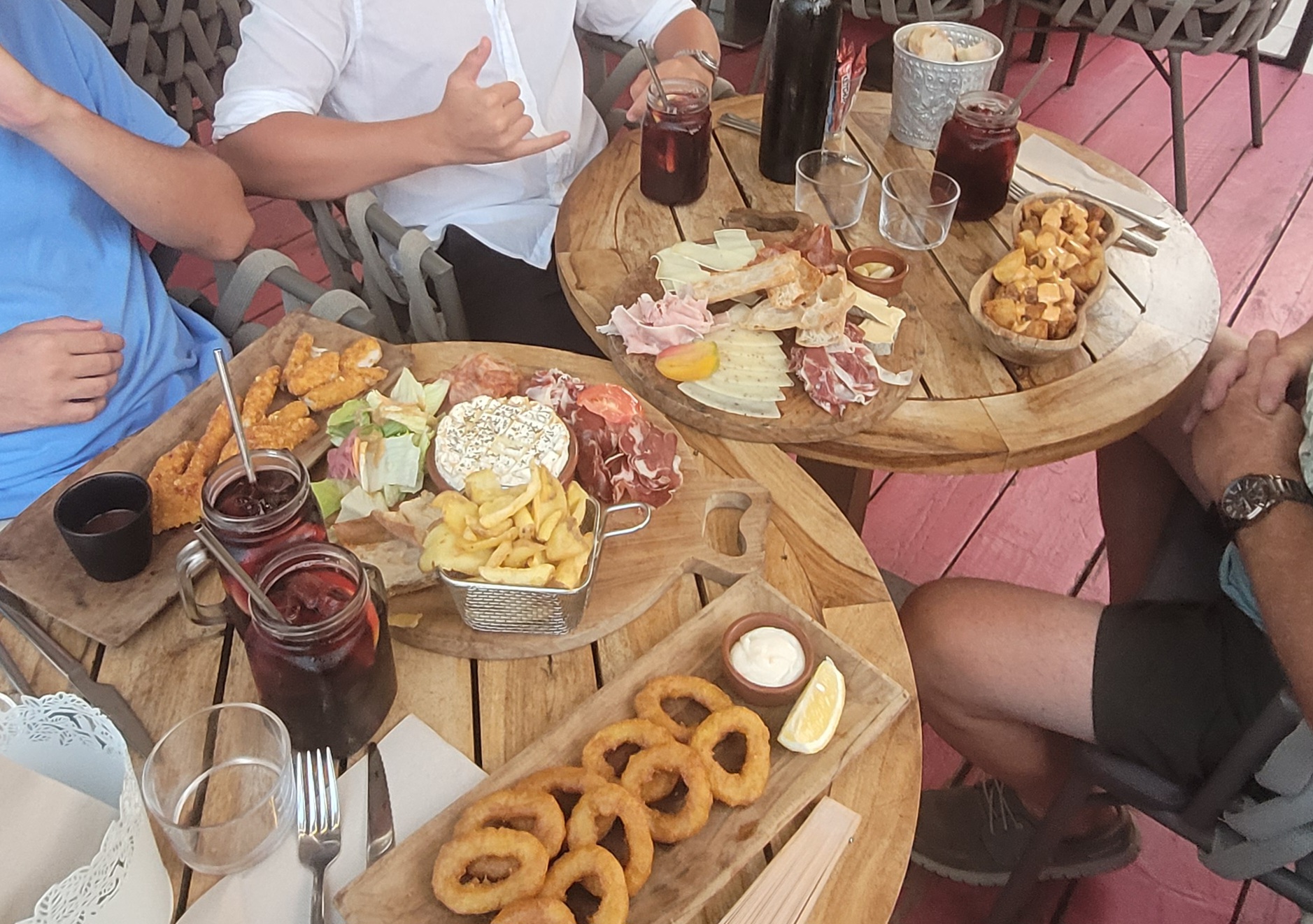 Repas très moyen ou la planche de tapas de charcuterie n'en a que le nom !, beaucoup de jambon cuit, un peu de jambon Serrano et un peu de bacon avec un peu cornichons 😒 Quant à la sangria, très moyenne. Menu cher par rapport à sa qualité. Serveurs sympa ! Dommage !