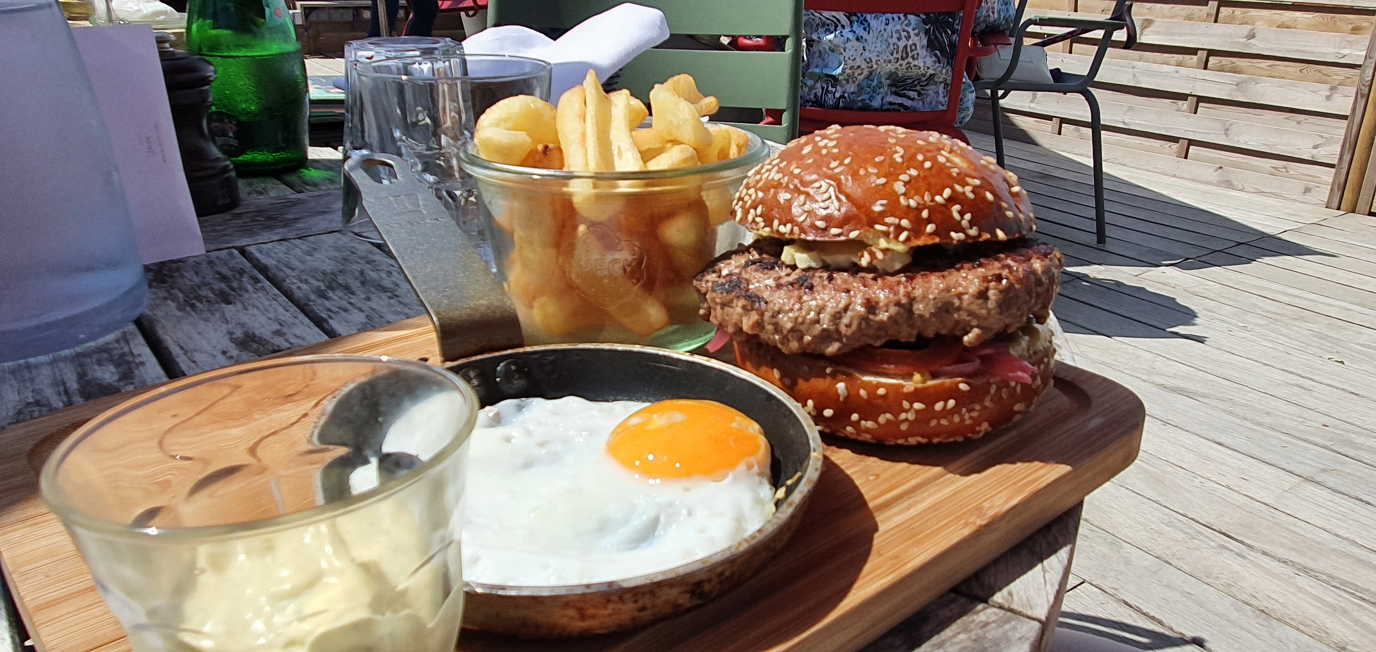 Service et repas exceptionnels ! Les portions sont généreuses, les cuissons parfaites et les serveurs très à l'écoute et à disposition. Un DJ est aussi présent en terrasse. Le rapport qualité/prix est excellent :D Mon conjoint s'est par exemple vu resservir un plat entier car il n'aimait pas le fromage du burger (ce qu'il n'avait pas indiqué lors de la commande). Il avait toutefois déjà mangé le reste de son plat : frites et oeuf