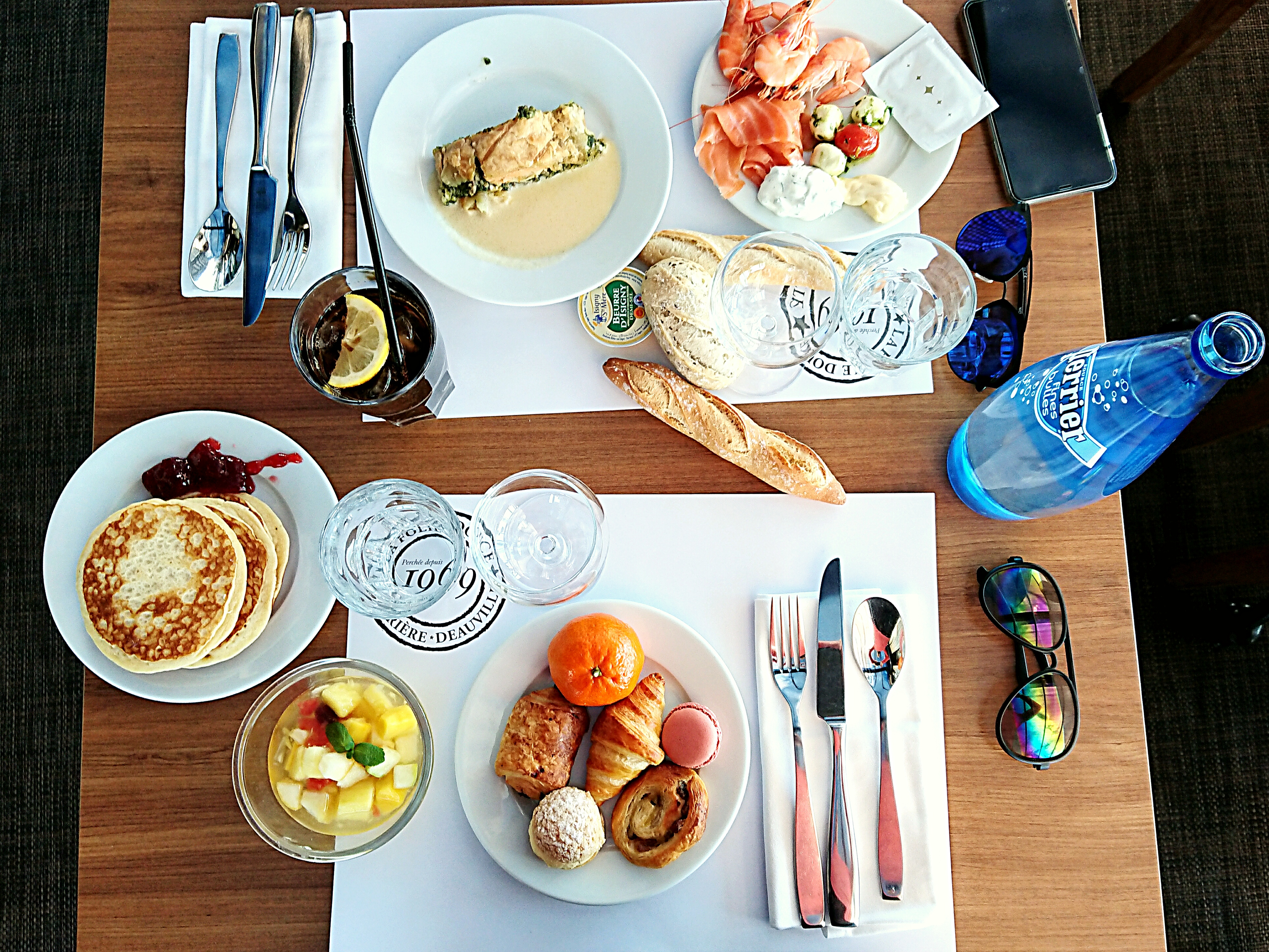 La veille de notre départ, nous avons délaissé la place Morny et sommes allés prendre un verre à La Villa. Un personnel souriant a pris notre commande, nous conseillant suivant nos goûts. Moment privilégié dans ce bel établissement, sur la terrasse devant la mer en attendant le coucher du soleil. Ne pas oublier, nous sommes en Normandie, les soirées peuvent être fraîches, prévoir un petit lainage.