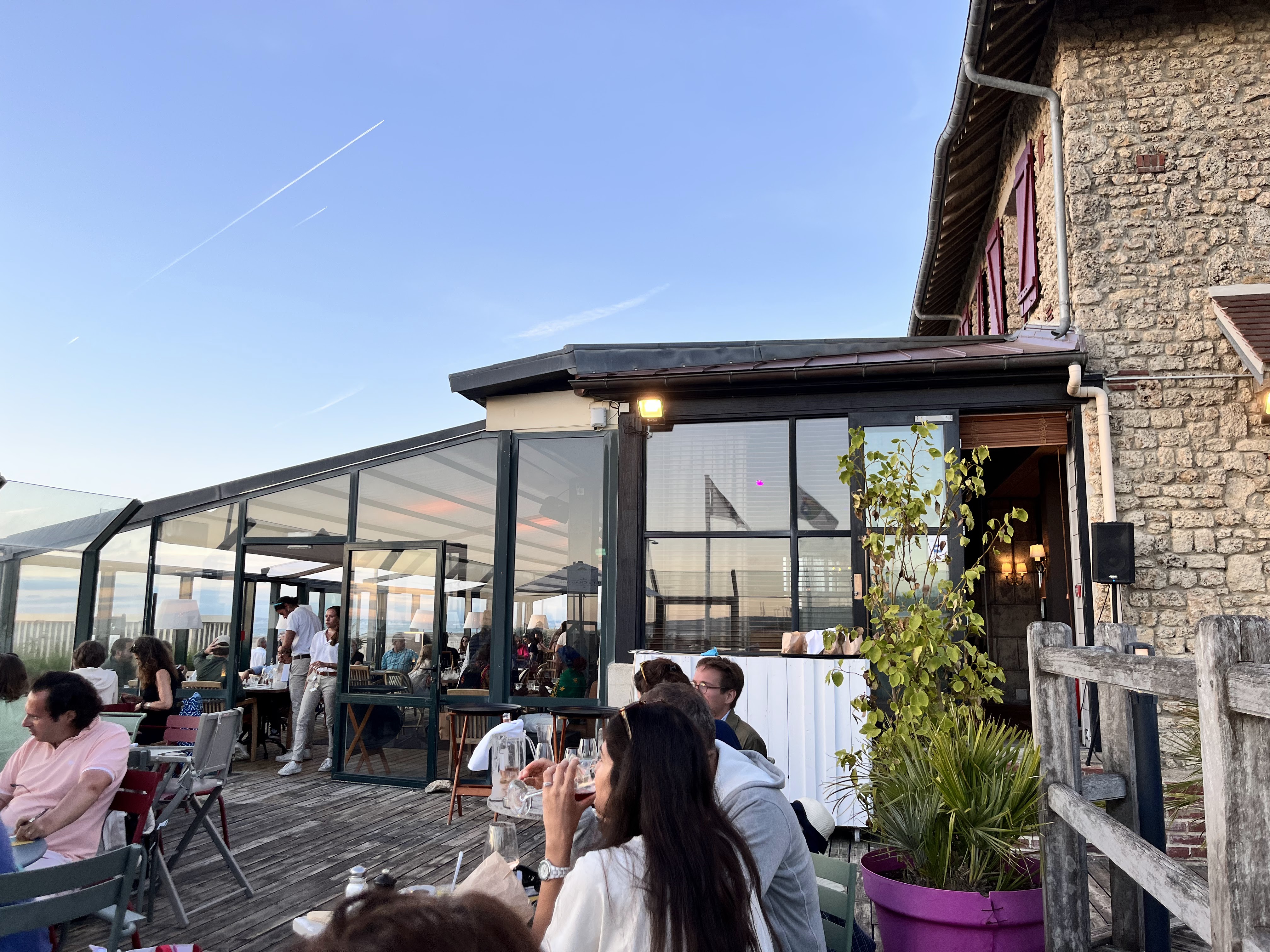 Excellent moment, serveurs géniaux et disponibles. Cuisine délicieuse. Nous avions prévu un dîner à 4 familles pour le coucher du soleil, nous avons eu la tempête en premier plan bien au chaud sous la terrasse chauffée. Je recommande fortement par tous les temps :D