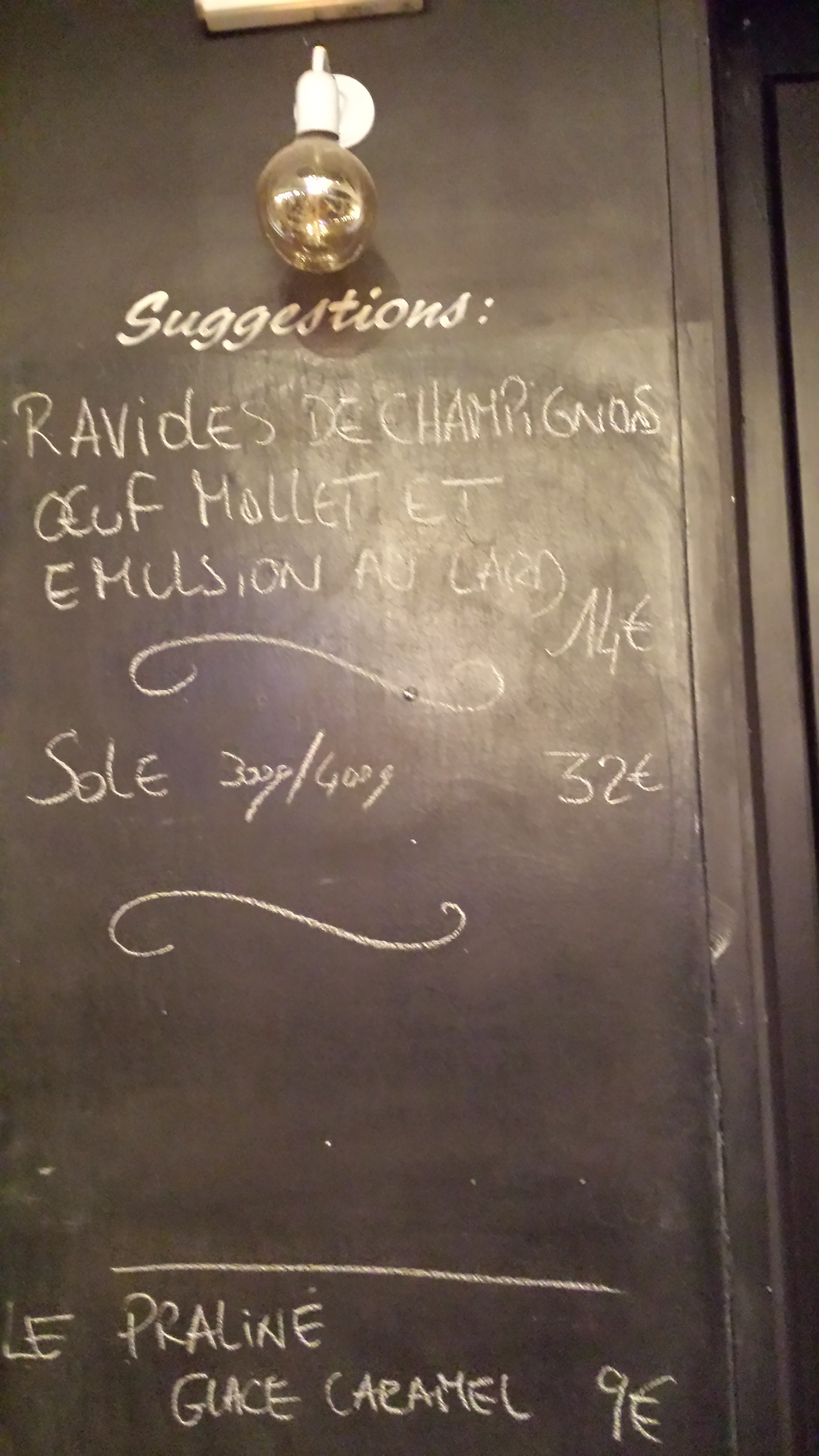un endroit sur le Tourny... bon .. mais finalement, tout bon. toit d'abord, difficile d'avoir une place.... samedi soir, c'est compréhensible. on a intérêt à réserver ! deuxio : la carte. intéressante, tout neuve. il y a des plats traditionnels, et nouveaux. j'ai choisi les joues de porc, traditionnels, très bon. mais, on peut s'aventurer dans des nouveaux : vu sur les autres tables, c'est aussi tout bin. alors.... courage ! vin au verre : bon. pour les huîtres (oui, il y a des huîtres, no 3 du bassin, excellentes!) - un entre deux mers sec est parfait. on ne sait pas ce que c'est, mais la qualité est irréprochable. Pour les joues, évidemment il faut un rouge. au verre - Pessac Léognan. que demander de plus? l'etoile vraiment exceptionnelle, qui revient au chef, c'est le pain. grosses tranches de campagne, légèrement grises, moilleuses mais aussi goûteuses - (au levain?) ? en tout cas, le pain est remarquable, et cela vaut le coup de remarquer ! merci, chef !