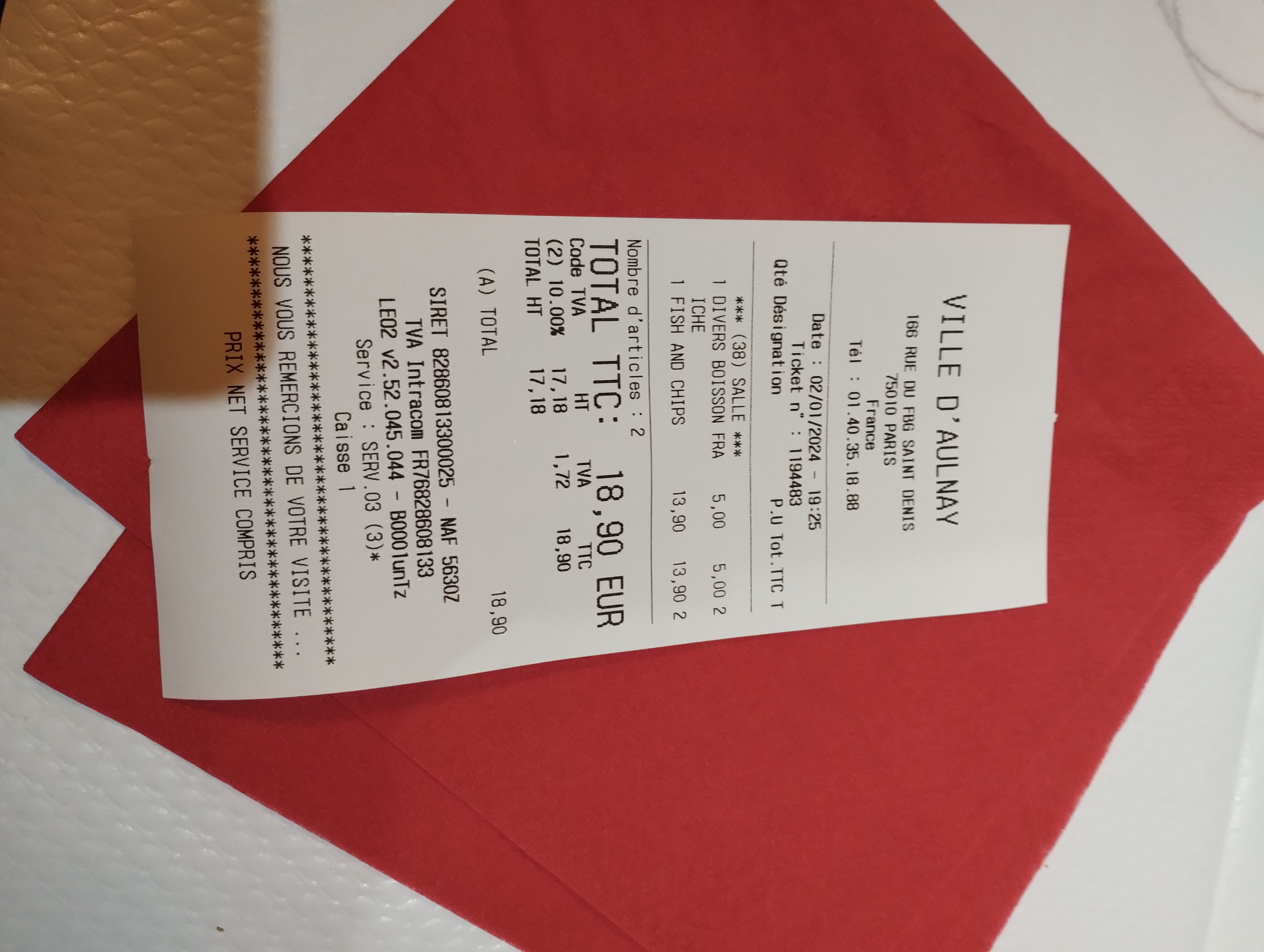 Première étape bistro parisienne où les gars étaient vraiment courtois.
