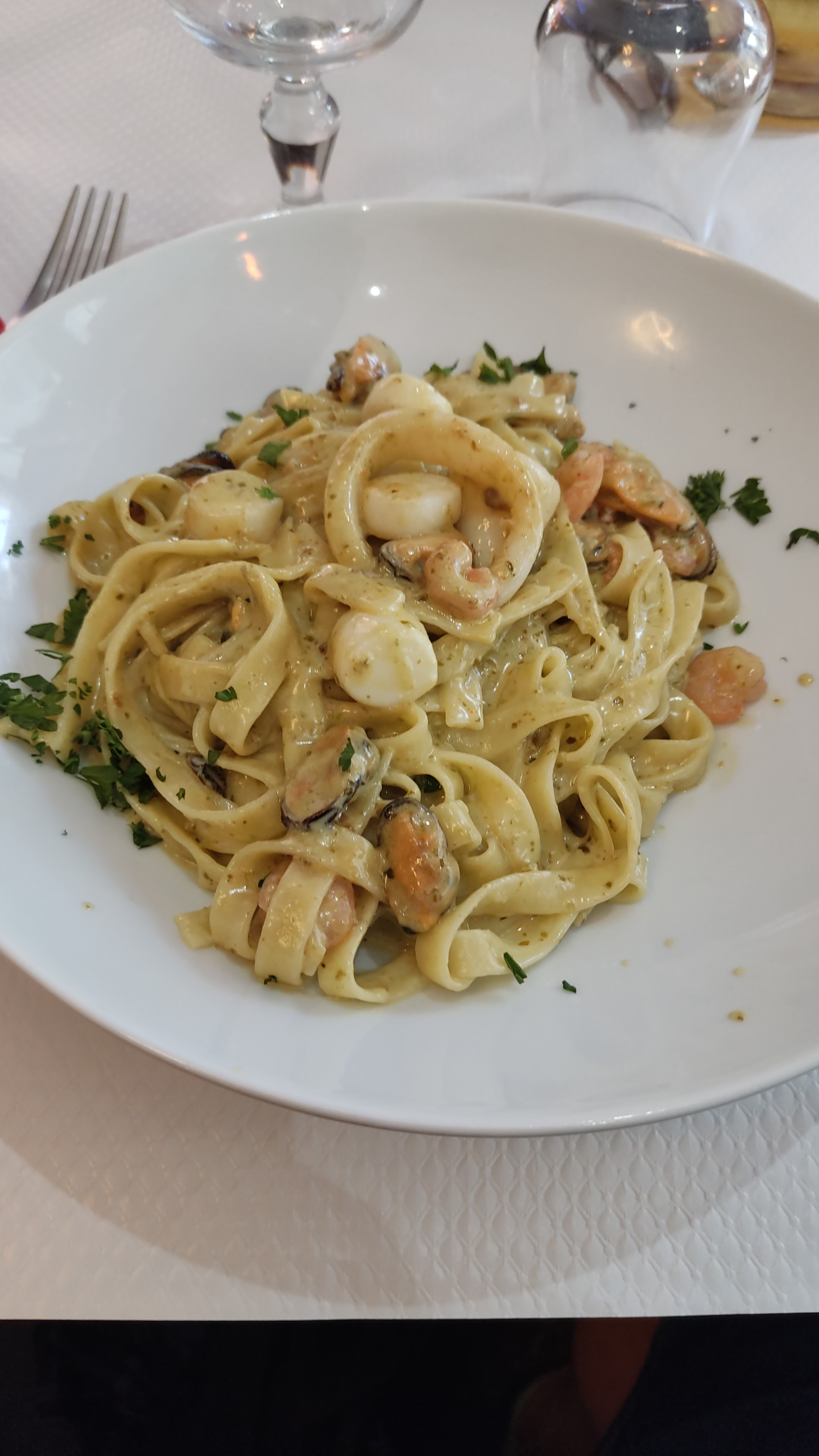Nous sommes venus ici pour la deuxième fois. La carbonara est bonne et délicieuse. Le risotto aux fruits de mer est bon. Les crêpes bolognaises et les crêpes aux œufs au fromage sont délicieuses. Je reviendrai.