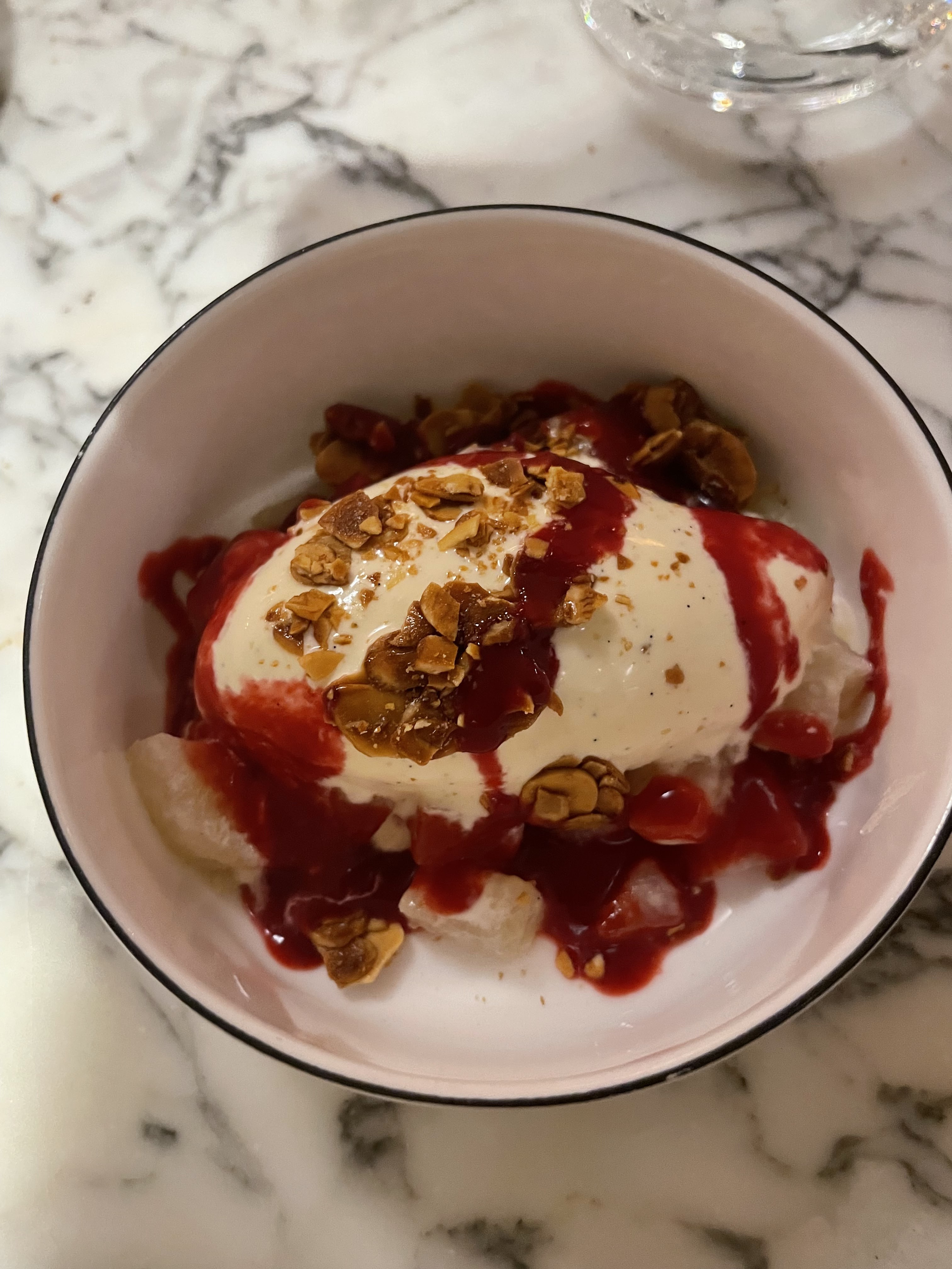 Service un peu lent car retour du plat, viande pas assez cuite à mon goût. Café gourmand différent de l'annonce, l'une des crèmes était soit ratée, soit périmée