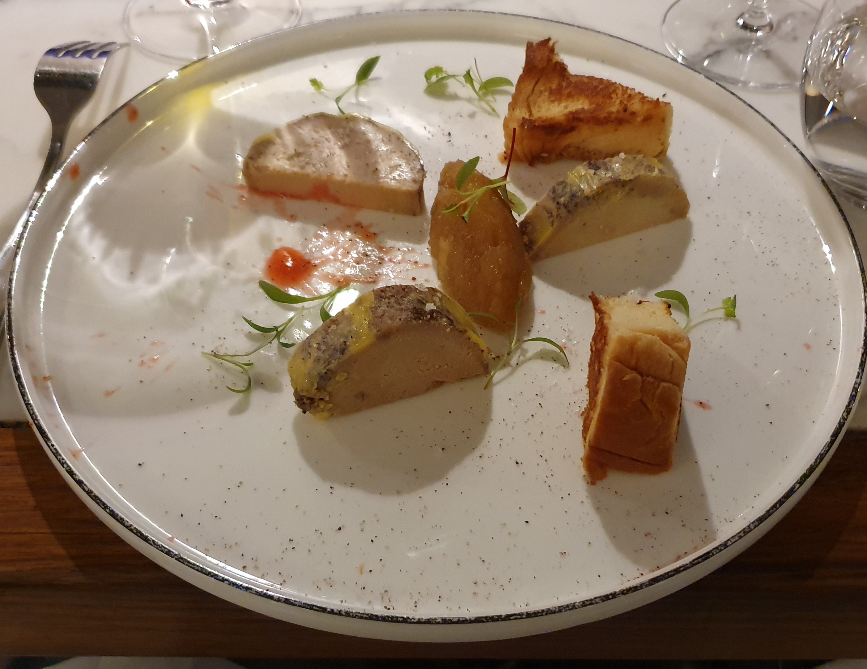 Des cailloux dans mon entrée (foies de volaille & champignons) , le tout beignant dans une sauce sucré.. Un magret de canard sec, pas grillé côté peau posée sur une flaque de purée non identifiée. Un service pas évident : - le coup de coude dans le dos en voulant servir la table de derrière - le couteau qui te tombe sur le genou quand la serveuse récupère l'assiette - après 3 bouteilles de perrier, on nous demande encore si on veut une Evian ou une badoit quand on dit *la même chose svp* Vu le prix, je m'attendais à une prestation culinaire et à un service de qualité. Très déçu de l'expérience.