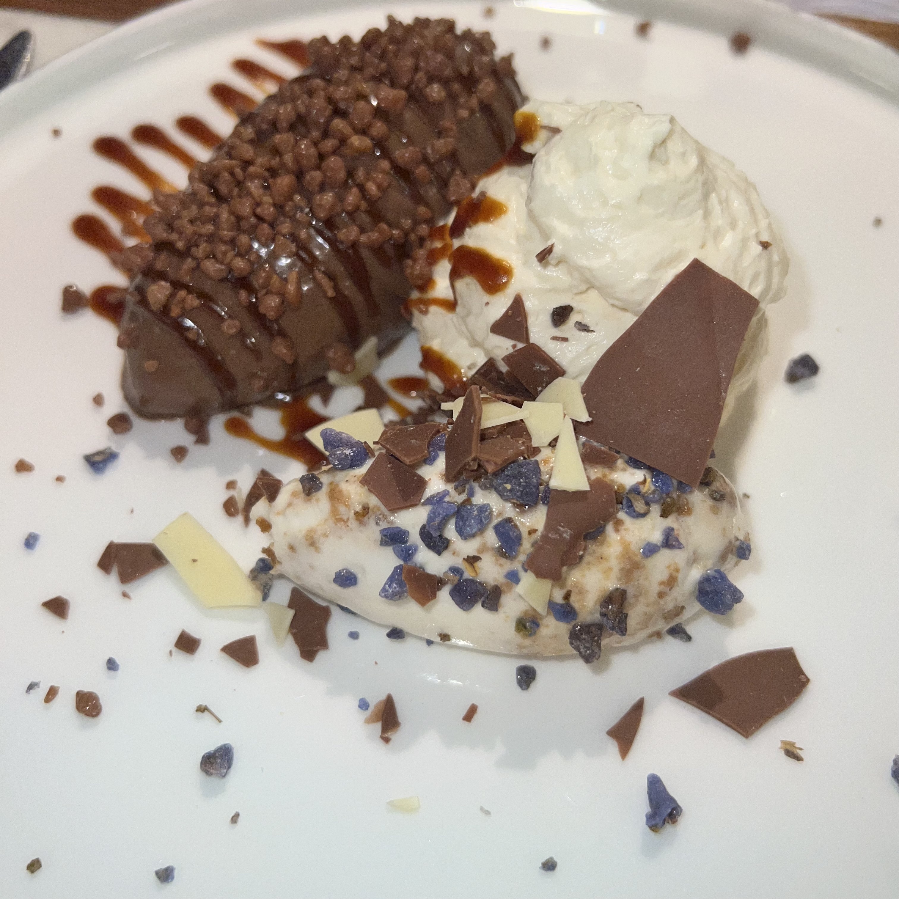 Drôle de voyage ! On a choisi celui en 4 séquences, on s'est dit que ça valait le coup pour 3€ de plus. Les deux entrées nous ont beaucoup plu. Et après un velouté et 3 gambas, on avait encore faim pour le plat. Les couverts nous ont laissé penser que nous allions avoir une viande. Finalement, sans aucune explication, ils nous ont été retirés et on nous a servi un dessert de compensation suivi du dessert prévu. A la suite du premier dessert, on avait déjà tous notre dose de sucre, nous avons donc beaucoup moins savouré le 2e. Nous ressortons donc assez déçus, le serveur très agréable néanmoins n'a fait aucun geste commercial ni prononcé quelques excuses.