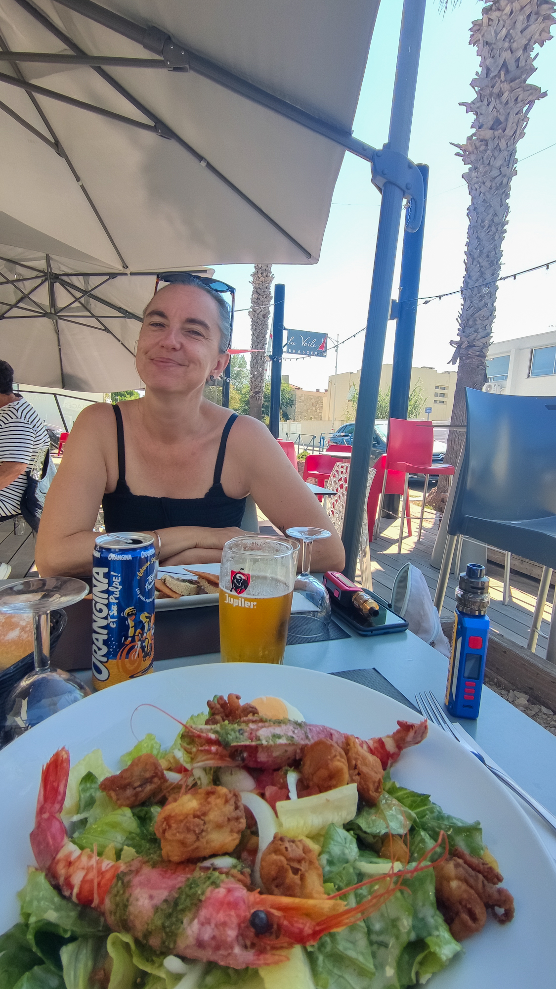 Bonjour, Lors de notre arrivée, nous sommes allés boire un café à La Voile nous connaissions déjà cet endroit pour y être venu il y a 3 ans, et à l'époque nous avions été très bien accueilli. Le propriétaire a changé, mais c'est toujours aussi sympa. Si vous aimez courir, vous pouvez le faire le soir, après le service, avec le patron.