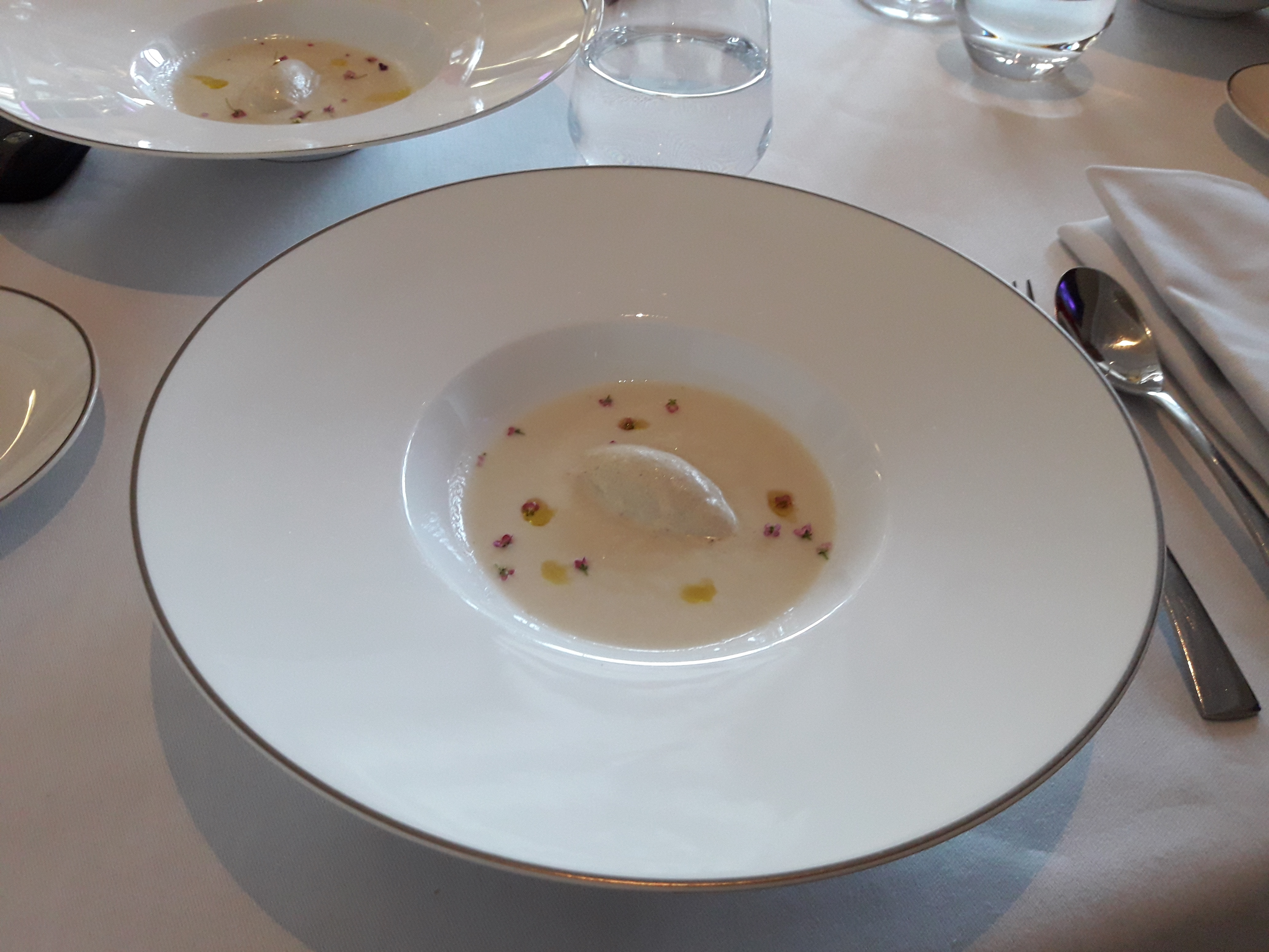 Un endroit génial avec une vue imprenable sur le lac. Nous avons pris le menu 5 plats, qui était superbe (mais les mises en bouche étaient correctes, rien de spécial). Le service était excellent. Globalement génial mais trop cher.