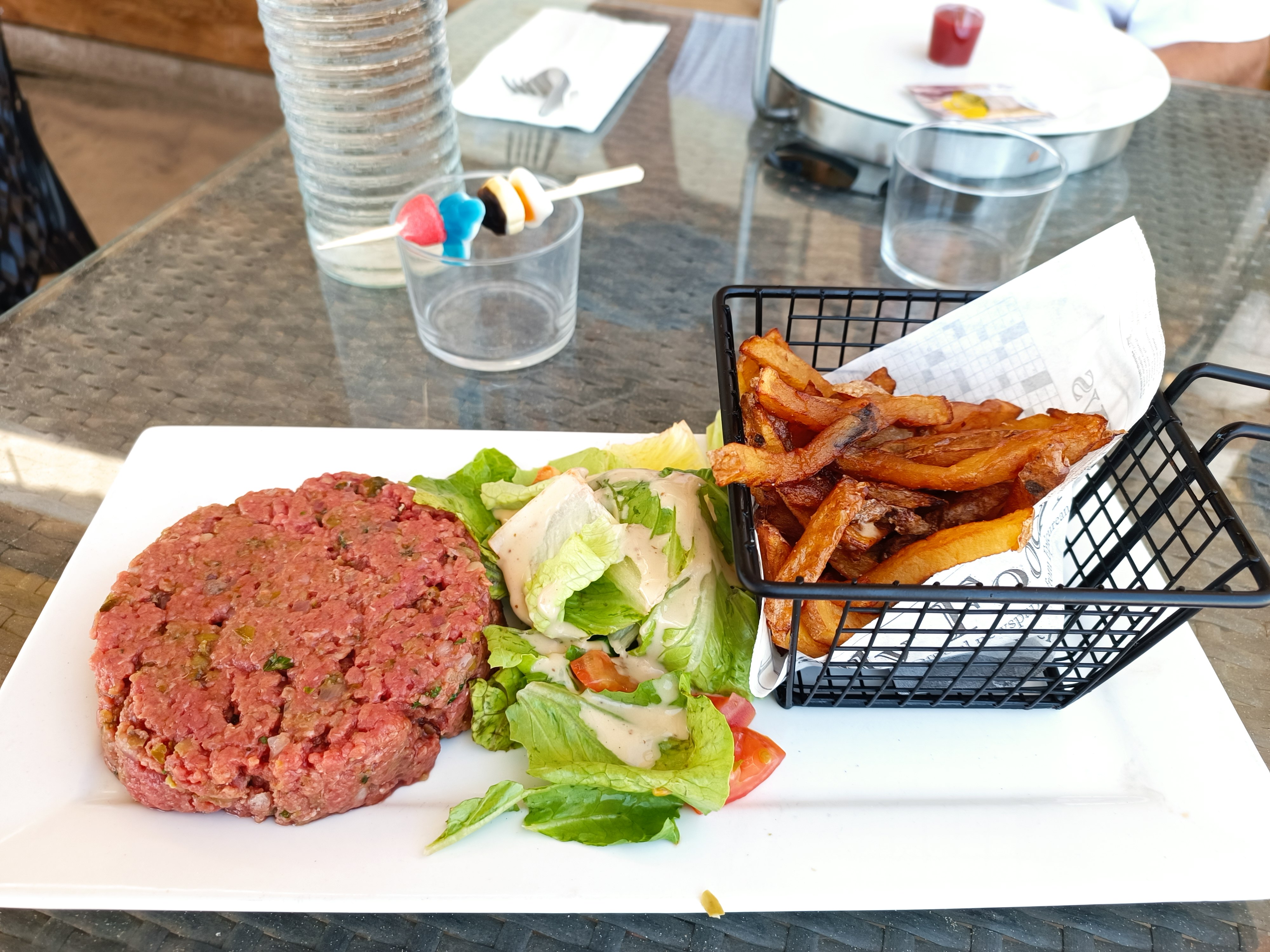 J'ai trouvé l'endroit très joli ( sur la plage le top) par contre salade copieuse mais avec beaucoup de salade !! On aimerait plus d'accompagnements. J'ai pris une brochette de poisson et il était bon,bien cuit. Par contre c'est servi avec très peu de frites et très peu de salade cette fois-ci.... Mais le tout reste correct.