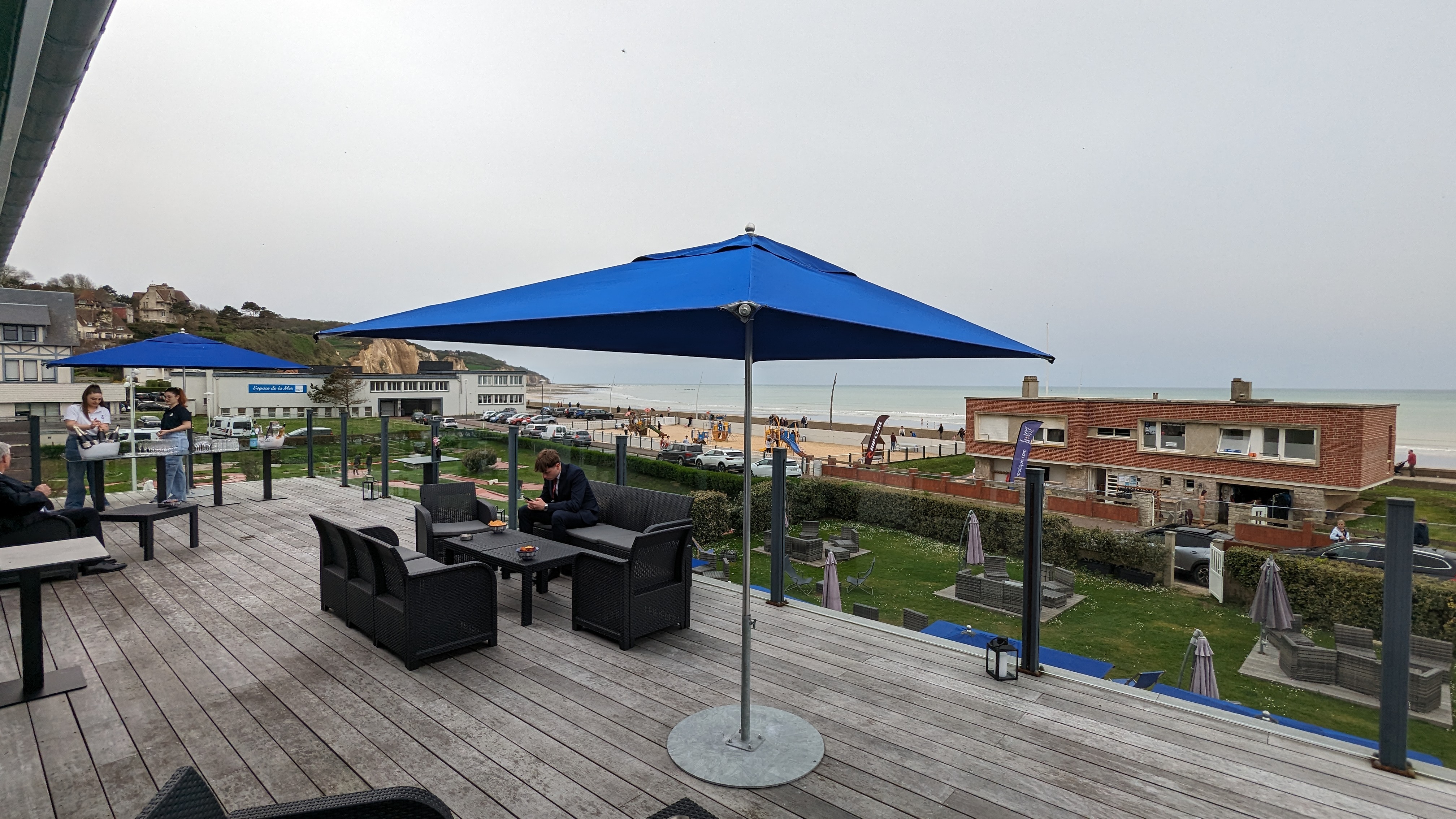 Je n'y ss allé que pour prendre un pot un soir de beau temps mi avril 2024. Accueil agréable et service rapide et souriant. Ça fait plaisir. La terrasse au dessus du jardin est agréable et permet de voir la Manche Planche mixte moyenne. Je connais la plage de Pourville depuis 20 ans et je suis content qu'une nouvelle terrasse soit ouverte. Cela va peut être motiver Les Régates à se bouger et proposer un service et une table digne du lieu. Je reviendrai à la voile bleue pour y dîner et parfaire mon avis :-)