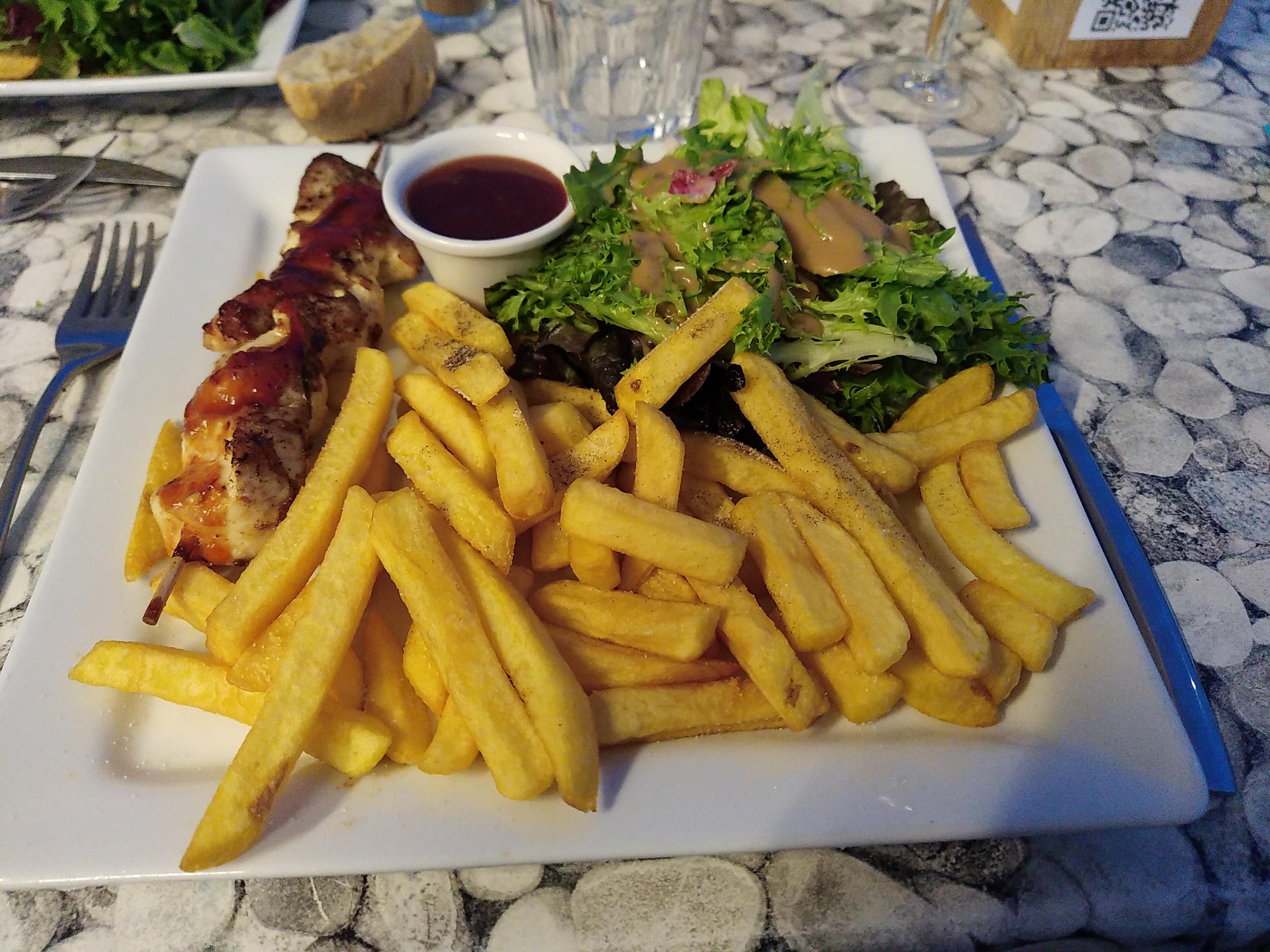 Tarifs corrects pour ce restaurant au bord de la plage. Les plats sont bons mais pas exceptionnels et j’aurais aimé avoir des chaises un peu plus confortables pour me donner envie de prendre du temps pour un dessert.