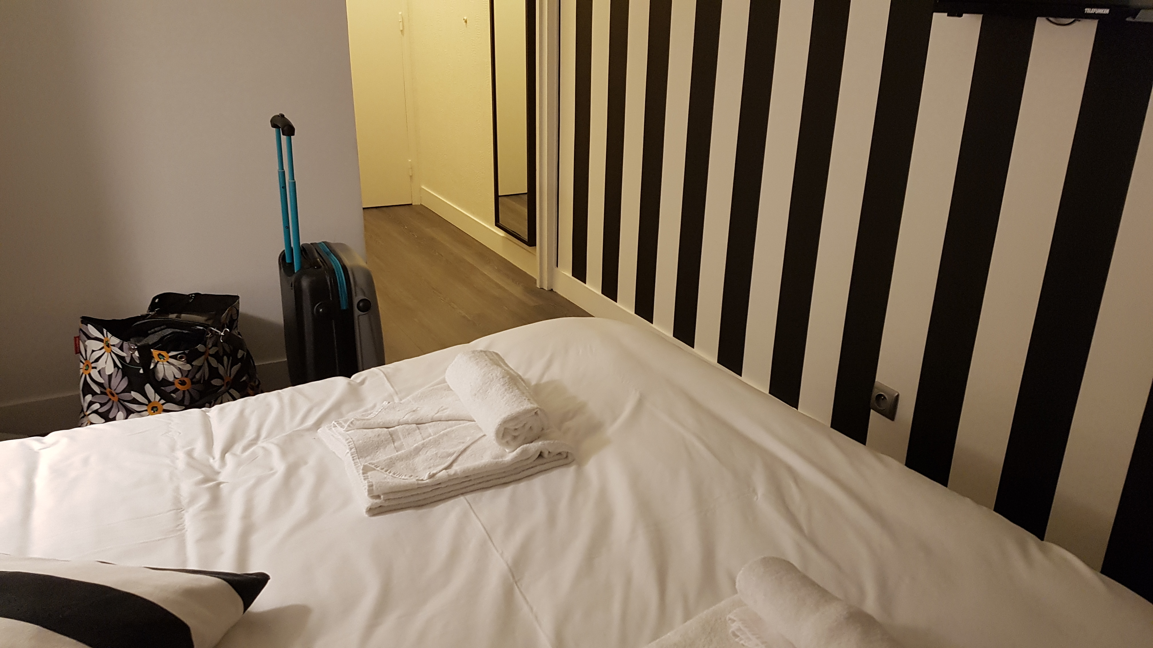 L'environnement de l'hôtel est très bruyant (en face de la gare et juste à côté d'un bar), le store de notre chambre était cassé, on n'a donc pas pu dormir dans le noir (pas difficile à changer...), la moitié des prises de la chambre ne fonctionnaient pas. La chambre est dans l'ensemble plutôt propre (à part de la poussière sous les lits ainsi qu'un mégot de cigarette...) Point positif le petit déjeuner était très bon et très copieux, la personne qui nous l'a servi très accueillante