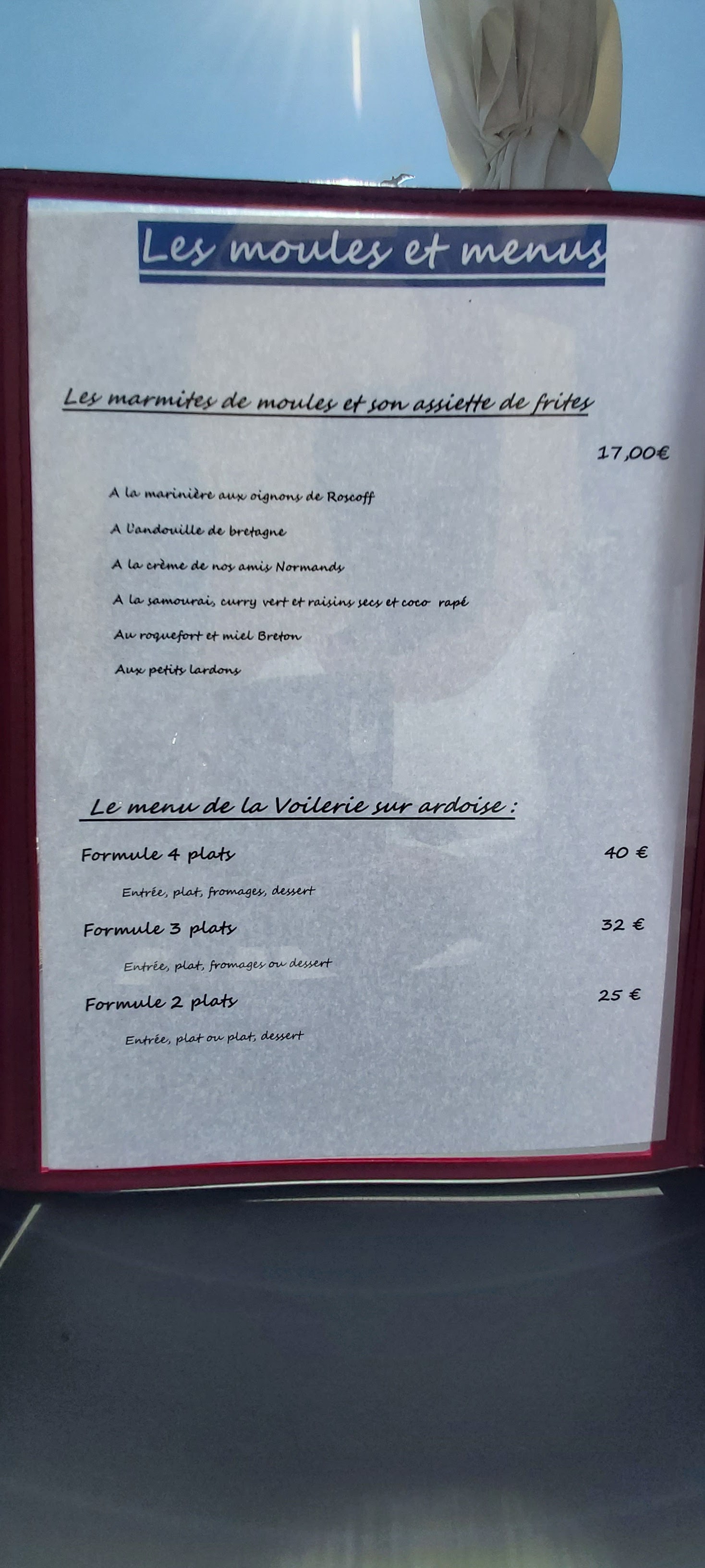 Nous sommes allées au restaurant très bien accueillie nous avons pris Une moule au roquefort et miel et moule à l'andouille excellent les serveuses accueillante et sympa nous reviendrons