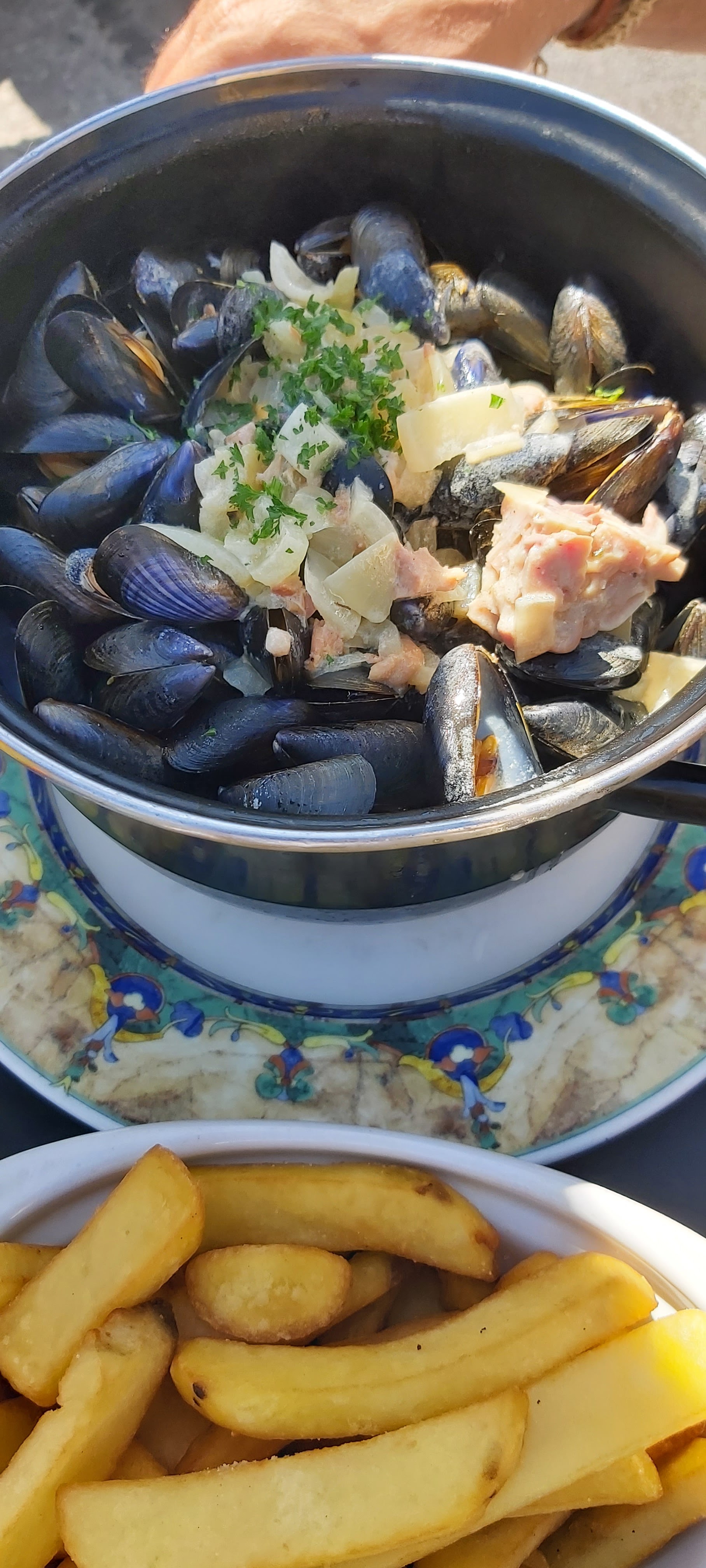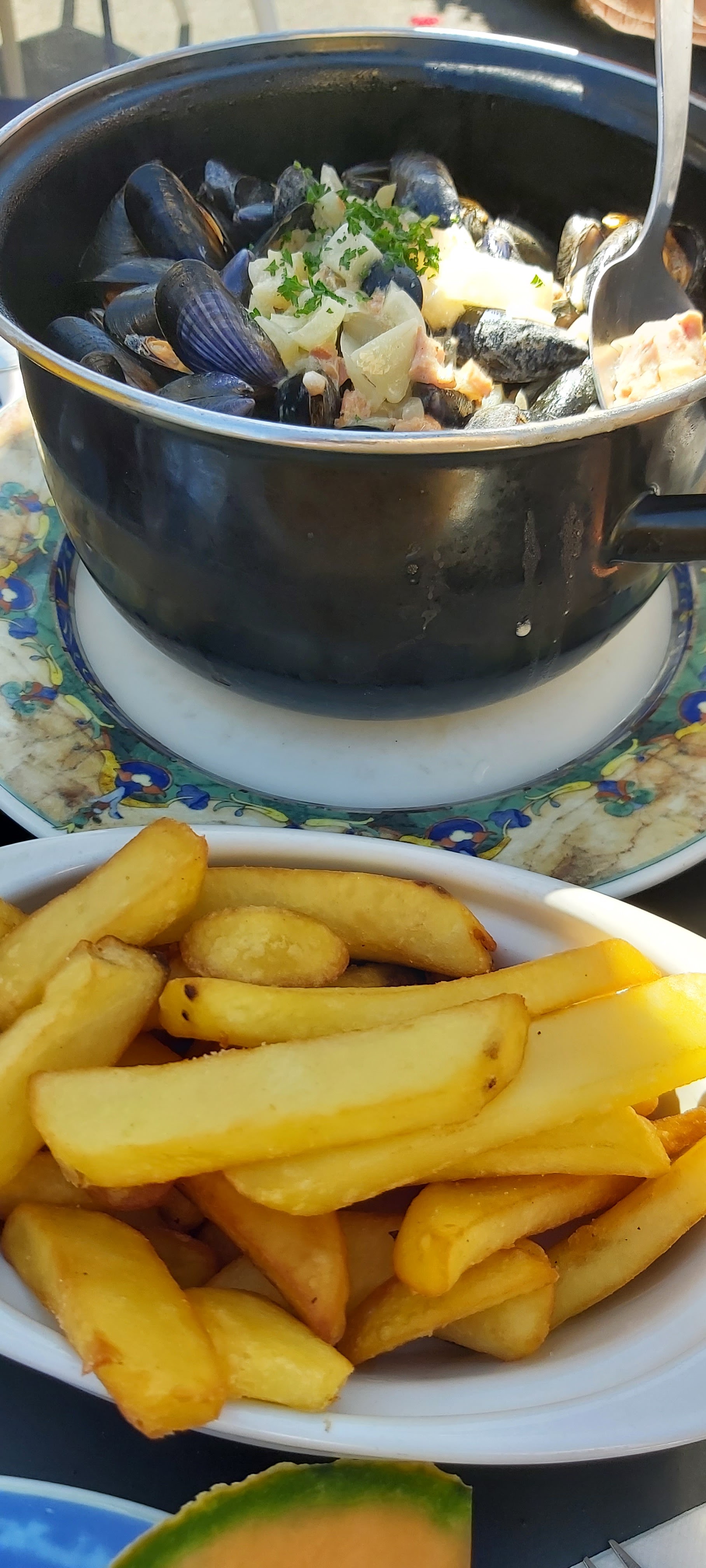endroit calme en fin de saison. Moules frites en quantité (même si les moules étaient petites). Dommage que les frites aient été des frites congelées. Bon rapport qualité prix.