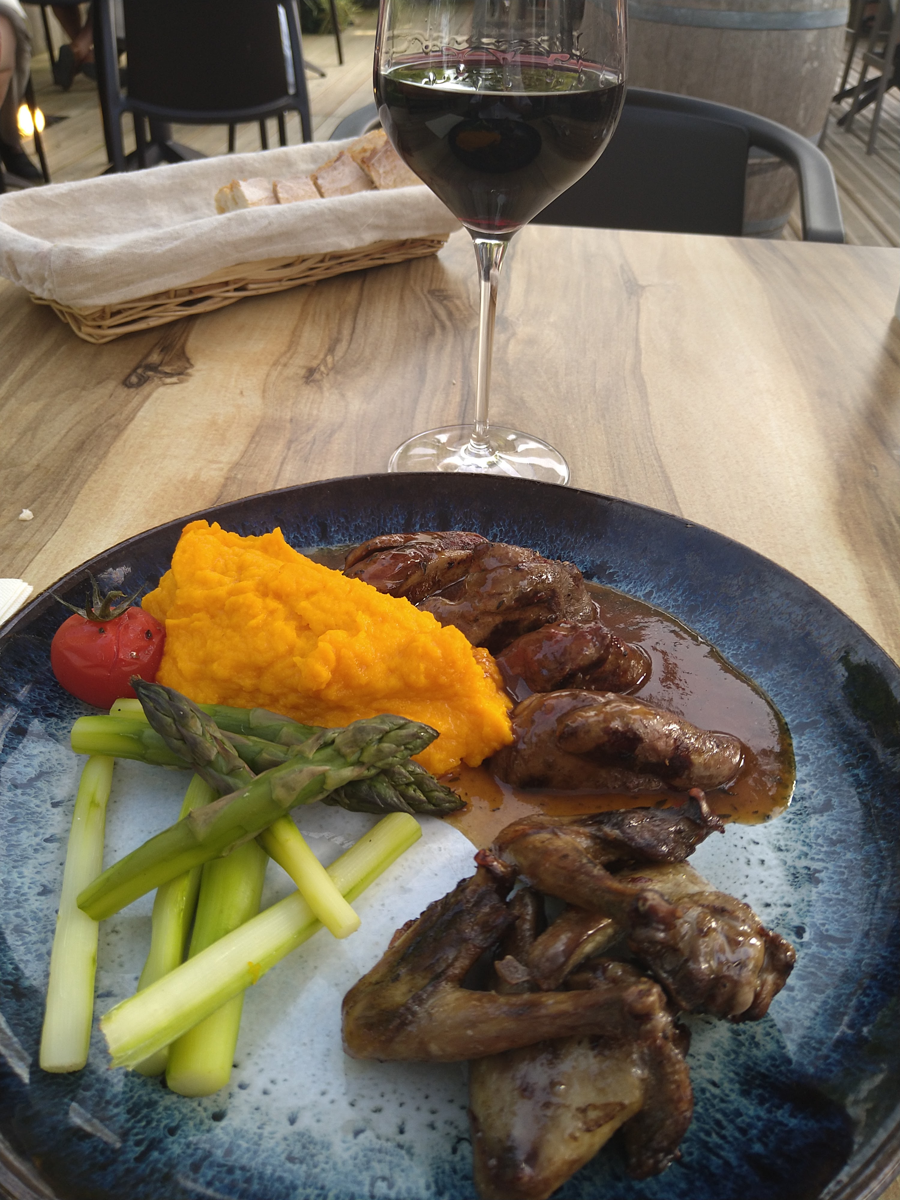 Une déclinaison de plats autour du pigeon ...savoureux et copieux Un service et un accueil chaleureux ,sans faute.Superbes assiettes artisanales et terrasse très agréable A découvrir absolument