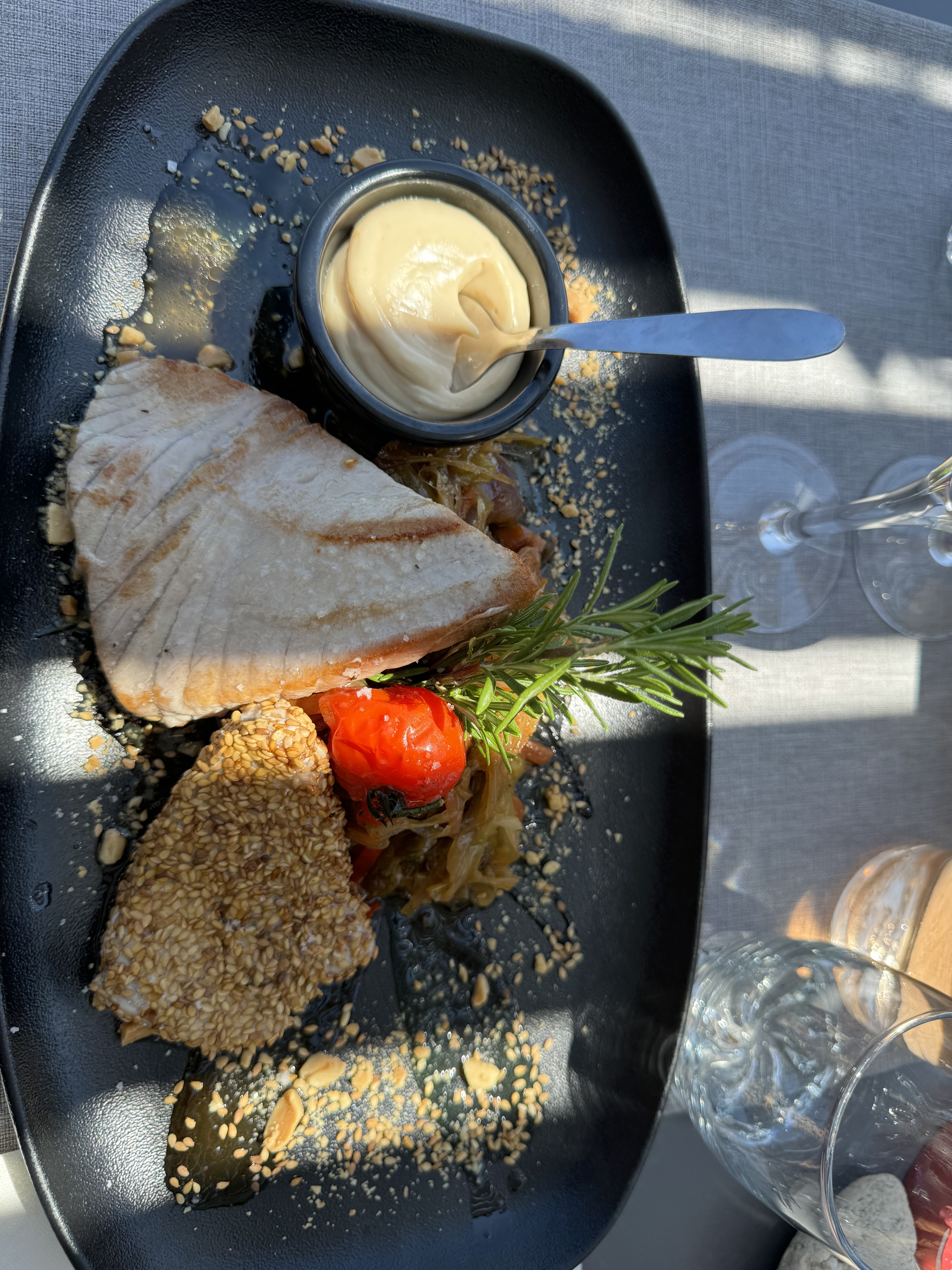 Exceptionnel! Superbes gambas accompagnées de cannelloni au brocciu. Nous avons louché sur les carrés d’agneau, dorade et autres poissons servis à la table voisine. On reviendra ;-)