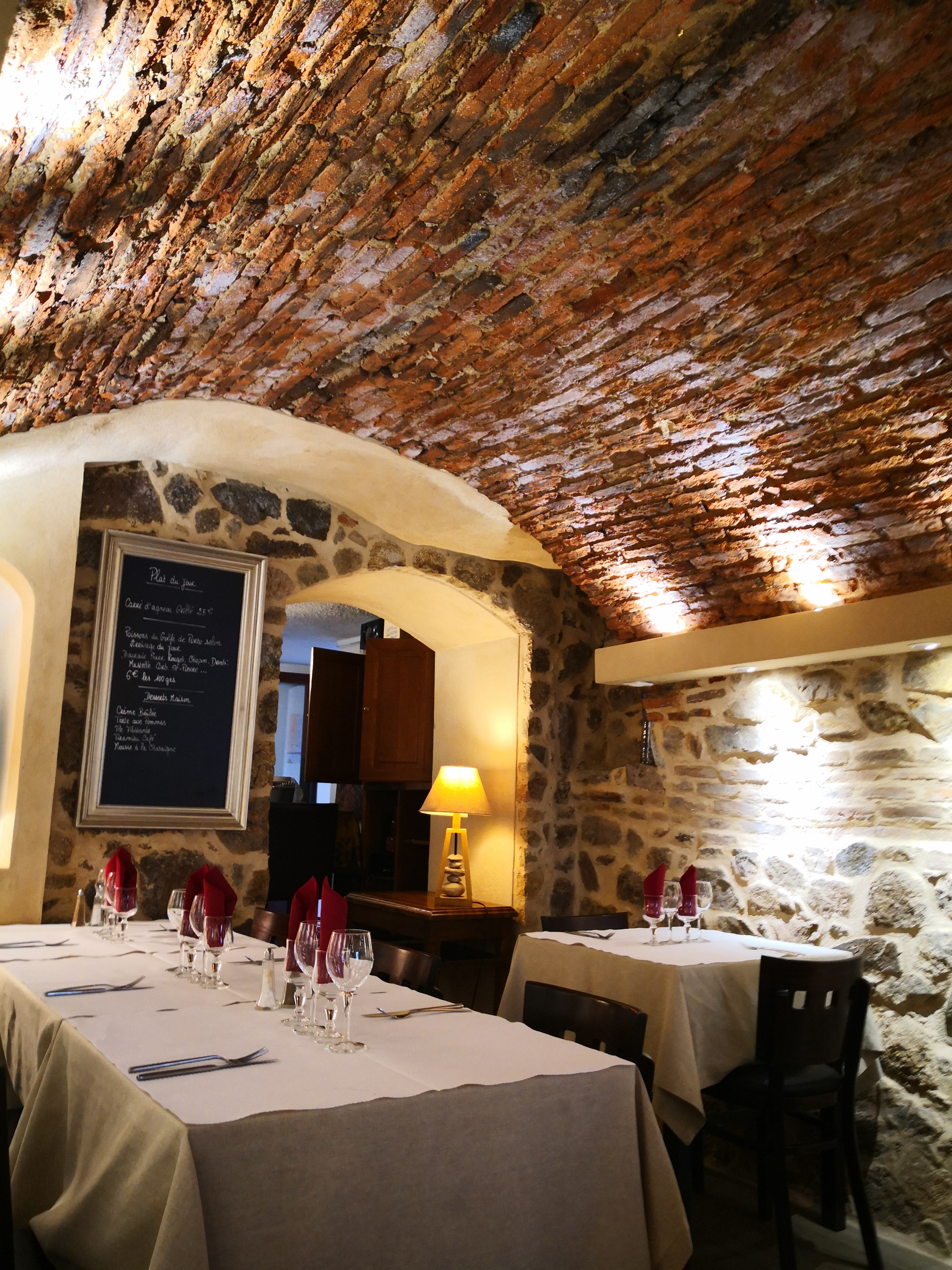 Nous avons bien mangé mais n’étions pas emballés pour autant. Les plats étaient plutôt classiques, en revanche les desserts étaient très bons. La salle sous la voûte est assez exiguë et l’on s’y sent un peu à l’étroit. On entend tout des conversations des tables voisines même en essayant de ne pas y prêter attention. La climatisation était forte et il n’était apparemment pas possible de la régler.