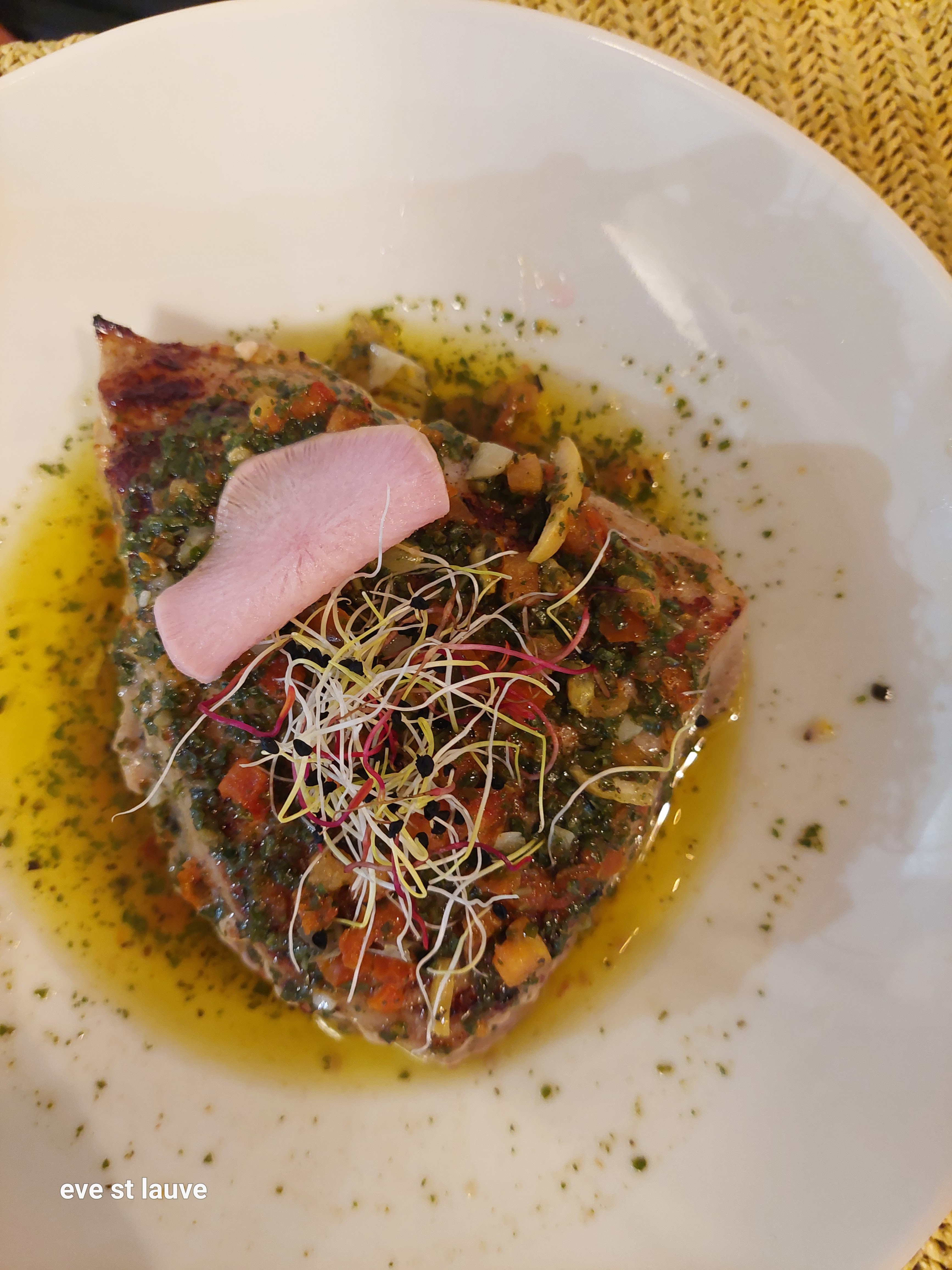 Rien que la déco lumineuse donne envie de s’assoir ! Notre plat était parfait et très bien assaisonné, et le vin rouge a une parfaite température Service rien à redire