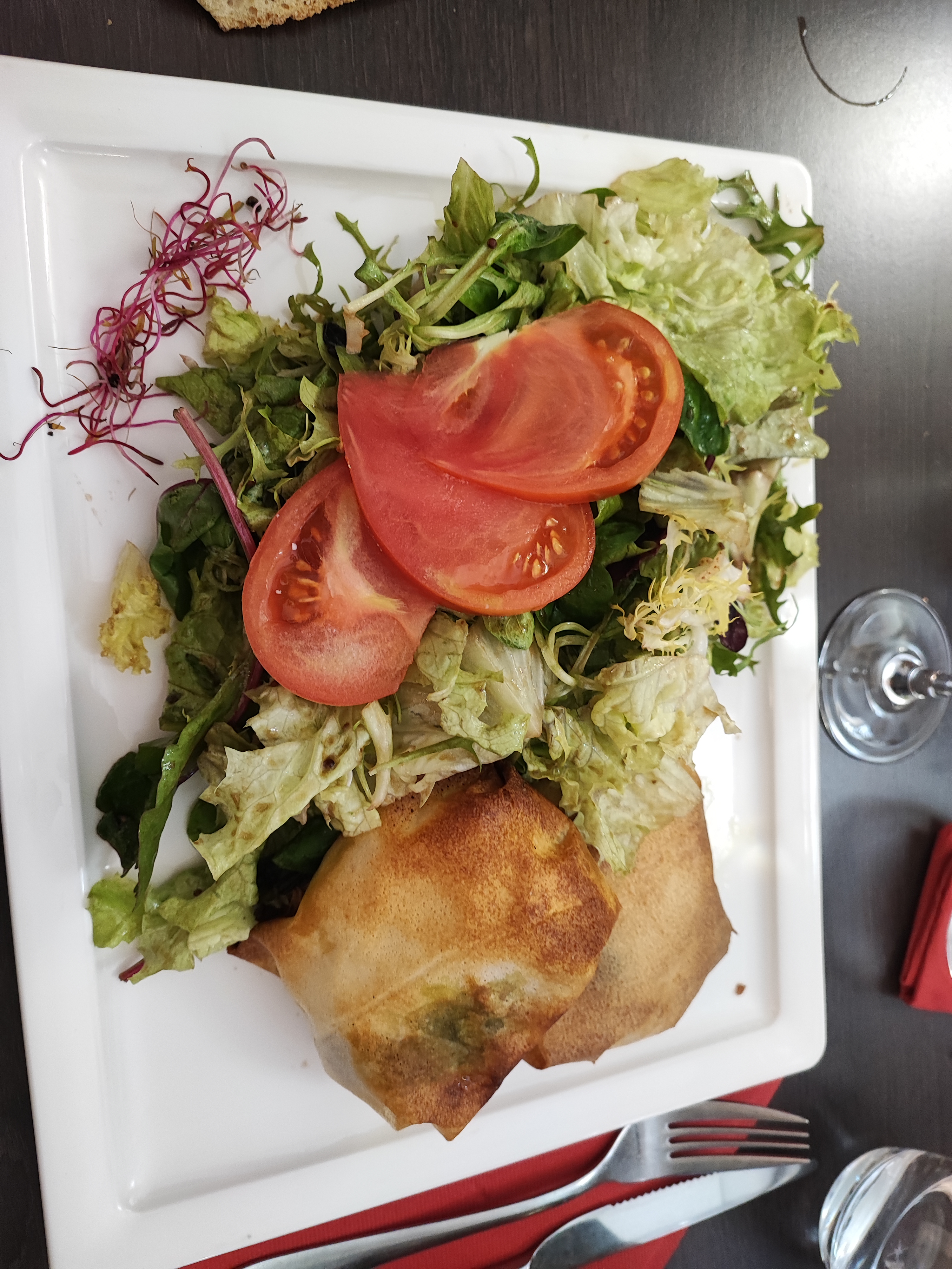 Assiette pas garnie et avec la moitié des ingrédients dans l'assiette pas de magret fume pas de tomate pas de croutons que de la salade et deux morceaux de gésiers serveur et patron m'ont dit d'aller me faire voir ailleurs quand je leur ai fait remarquer le manque de mon assiette... restaurant à éviter