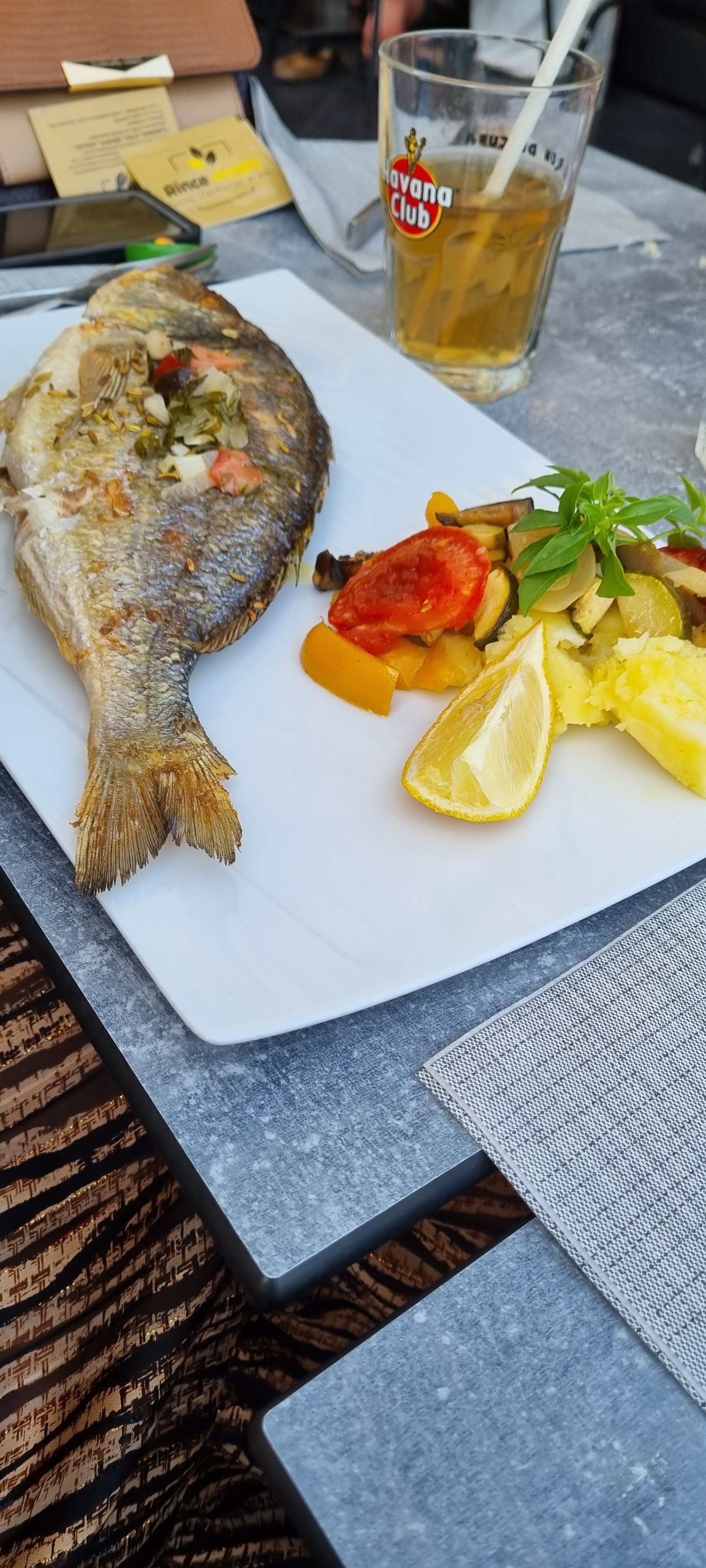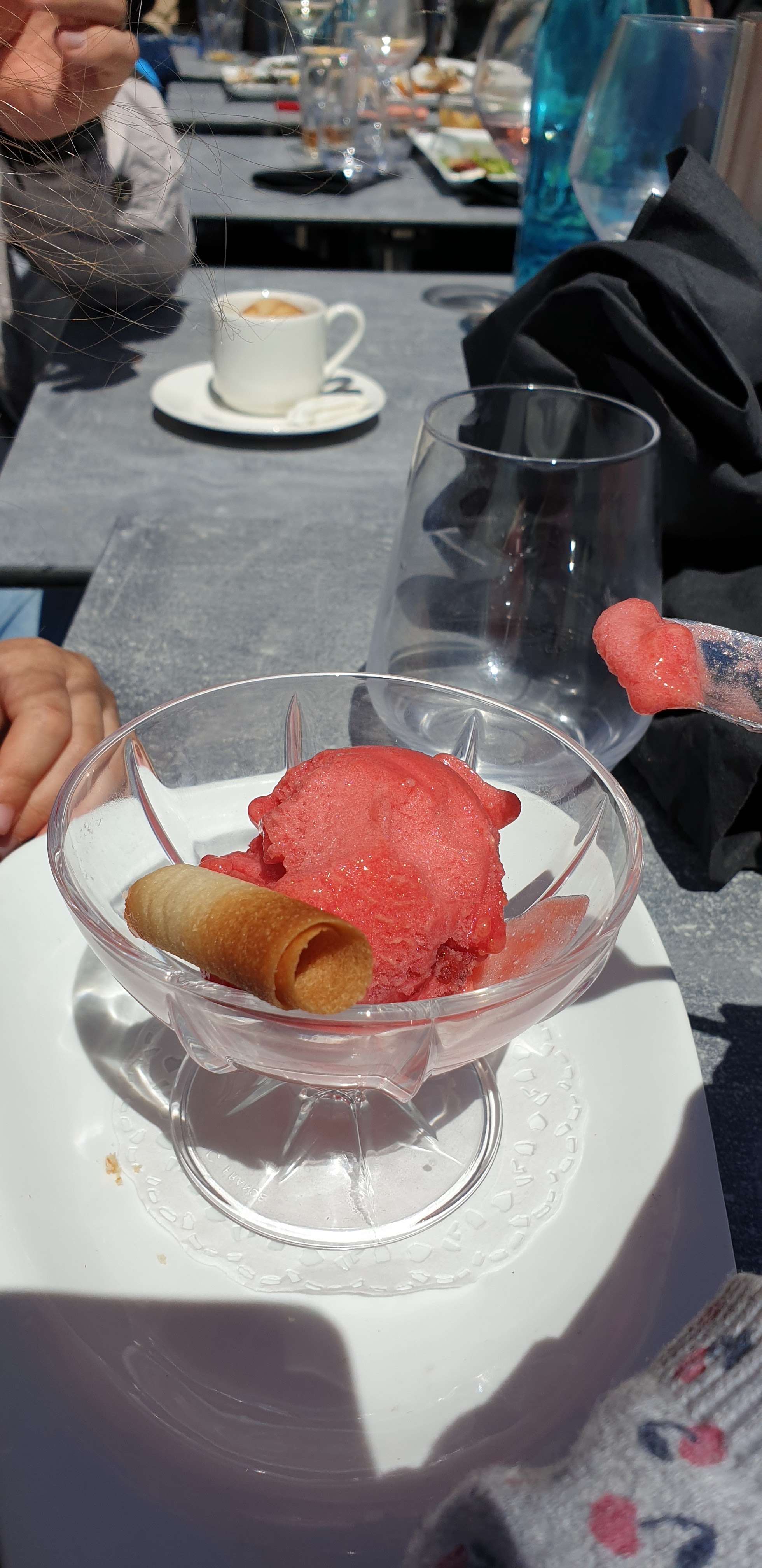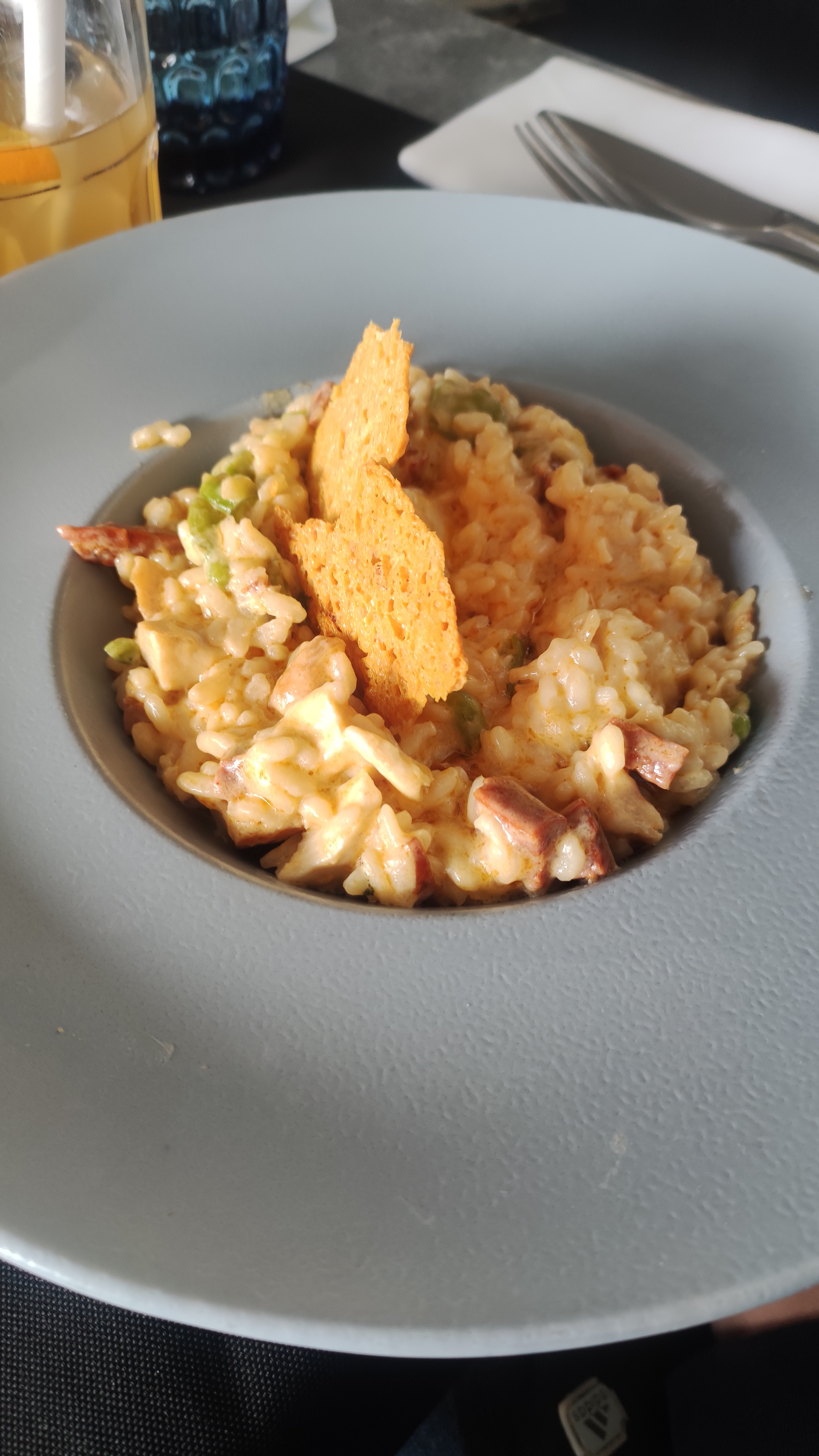 Premier jour des vacances et premier restaurant. Serveurs très joviales et qui savent nous tenter avec leurs apéros et desserts d’une simple communication. Le poisson blanc avec le risotto et les petits légumes accompagnés d’une sauce au parmesan et chorizo, vraiment très bon. Service rapide.