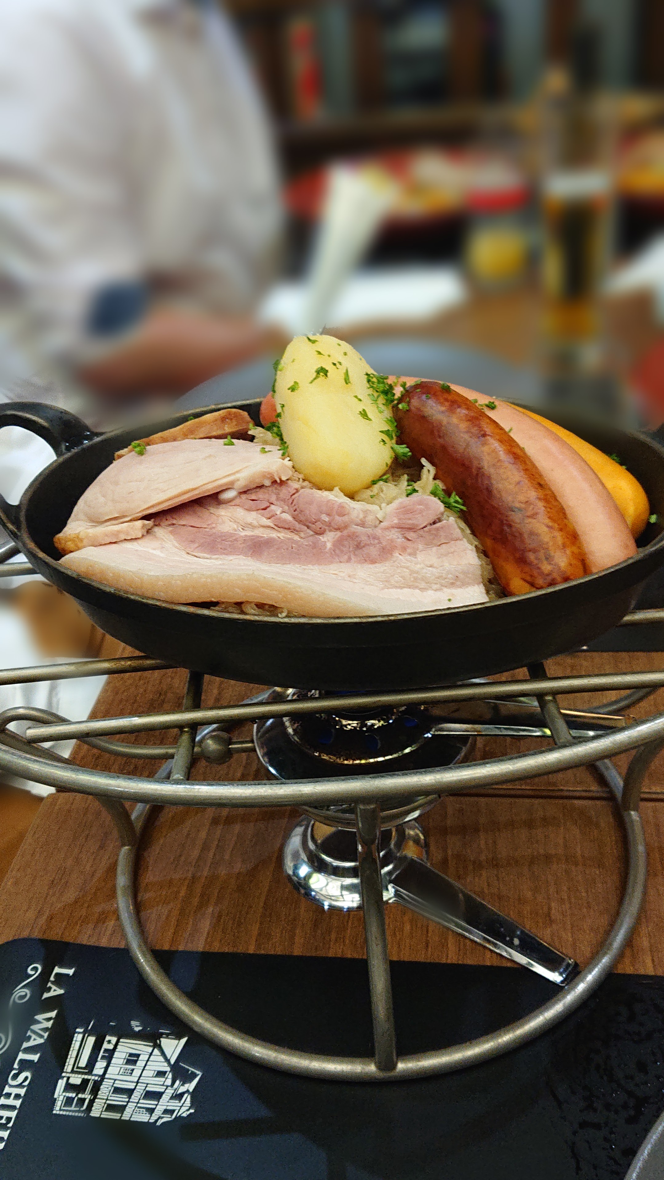 La Walsheim n'a sans doute pas de lien avec la commune de Walsheim en Allemagne. Moi qui croyais tomber sur un restaurant alsacien avec des spécialités alsaciennes. Mais la choucroute est acceptable. Également surpris de voir très peu de personnes en plein mois d'août.