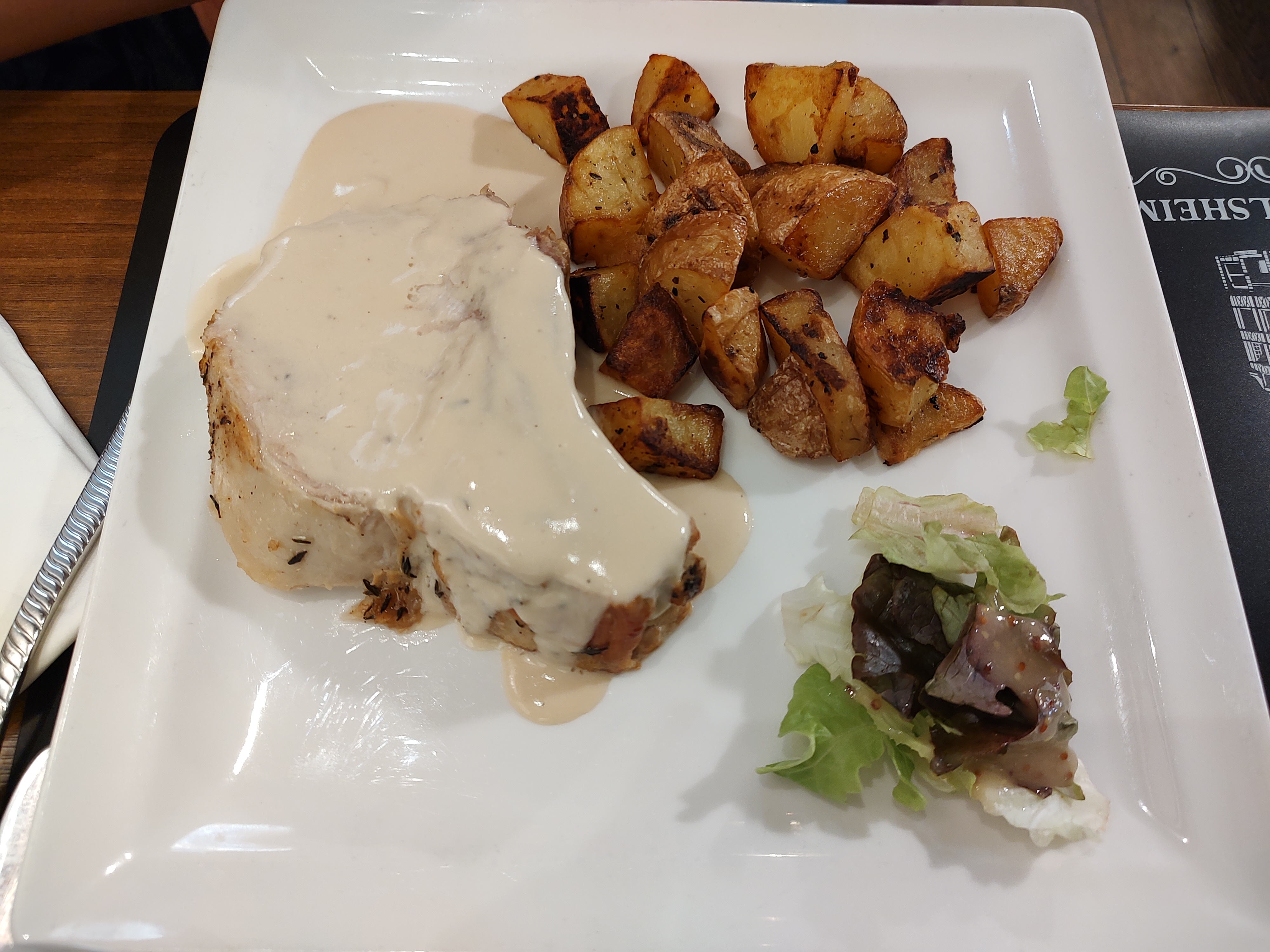 Le personnel parlait bien anglais et était très gentil. L'intérieur du lieu était confortable et grand, vous pouviez facilement y aller avec un groupe de plus de 10 personnes. J'ai commandé une salade César et une crème brûlée, la salade était correcte et la brûlée était très savoureuse.