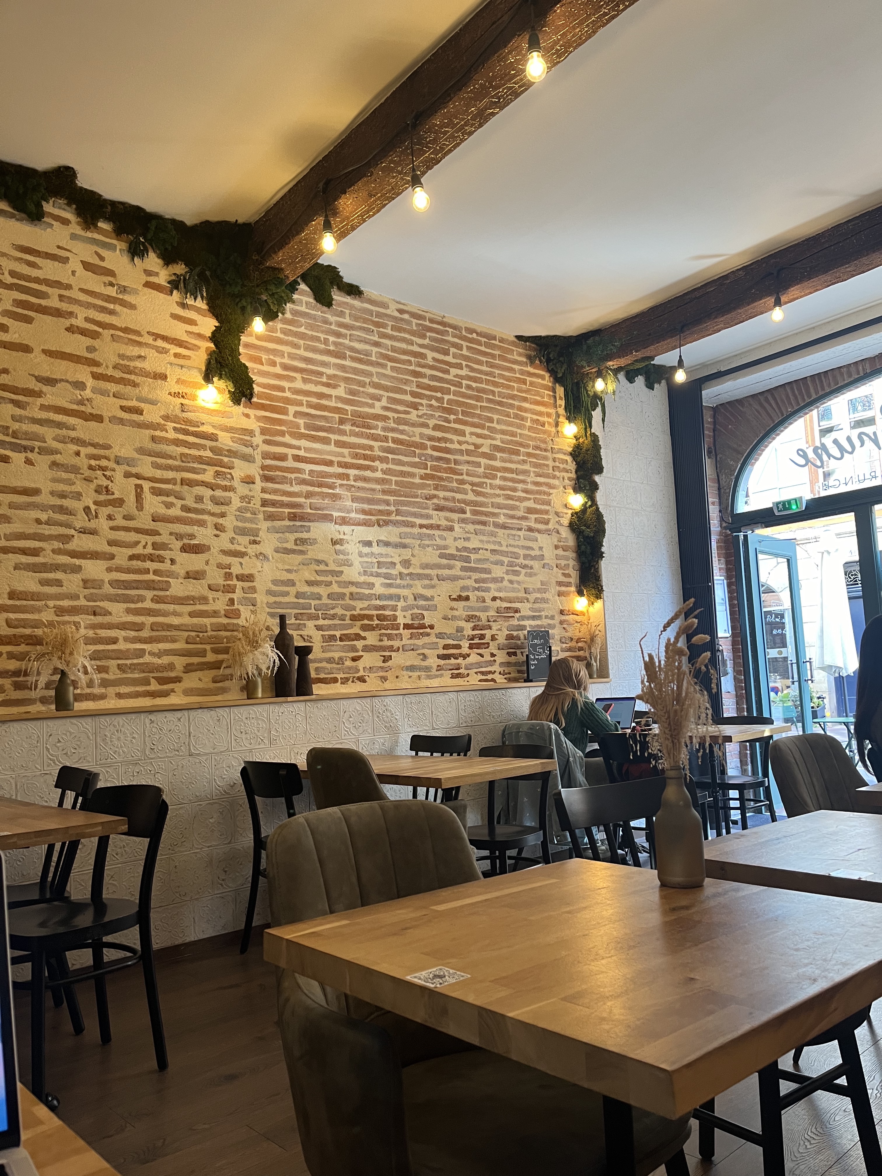 Un des meilleurs cafés de Toulouse. Beaucoup d'options pour les vegans, végétariens ou autres personnes ayant des restrictions/allergies alimentaires. La cuisinière innove et propose des plats différents à chaque saison et le barista propose des cafés sensationnels avec des options lait végétal (je recommande le lait d'avoine!). Le lieu est super beau, avec sa brique rouge et sa déco bohème. Si vous cherchez une pause détente sucrée ou salée, c'est le lieu parfait!