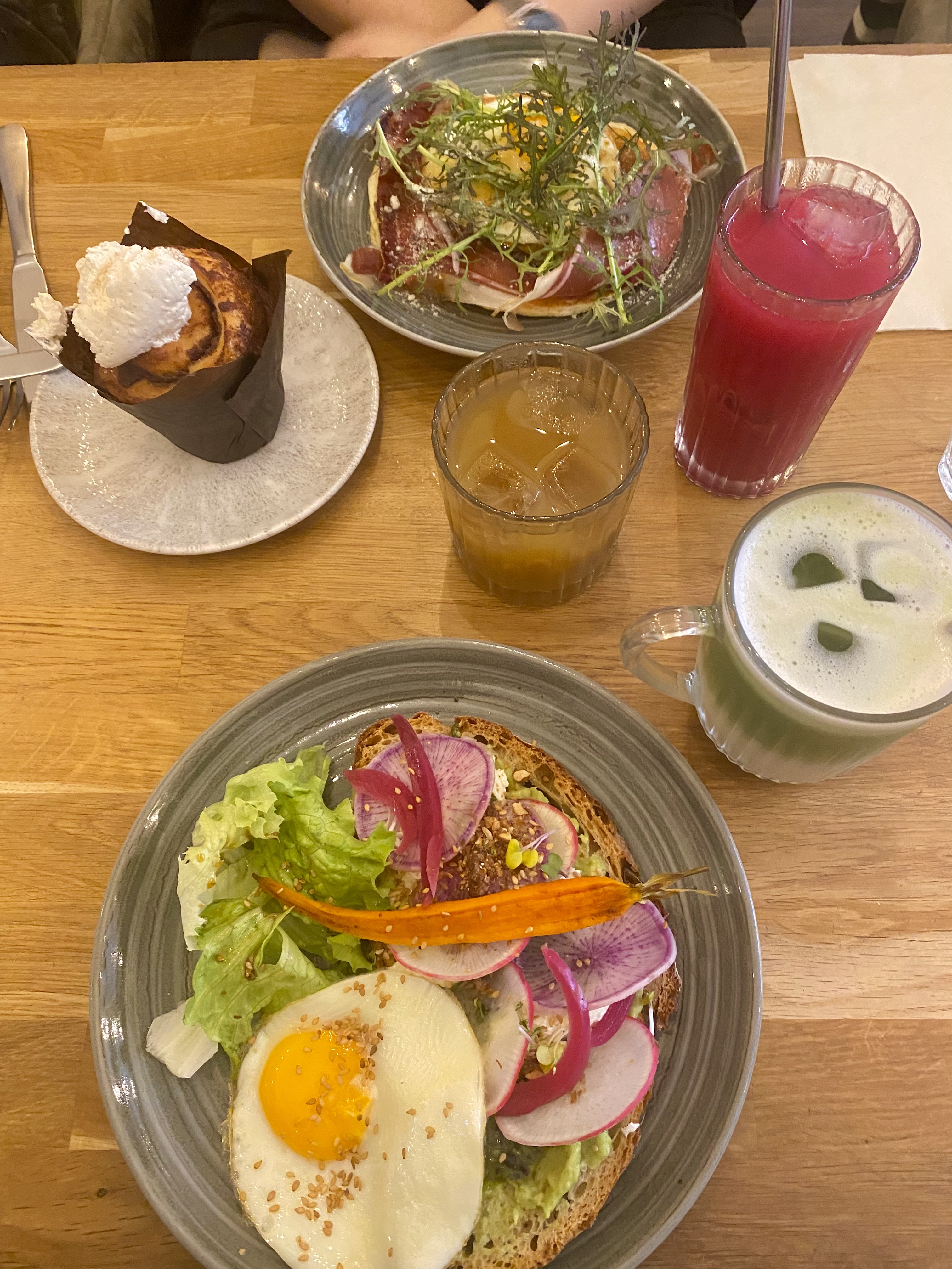Avis mitigé car l’endroit est sympa mais on y retrouve le même soucis que la plupart des endroits pour bruncher : c’est bon mais sans plus et un peu trop cher. Les cafés sont délicieux, le matcha était un peu trop coupé à l’eau. Les assiettes salées sont généreuses en portions mais ça reste des combinaisons simples (œufs, légumes) qui ne font pas chavirer. Point positif pour le granola bowl qui est lui très bon ! Nous avons goûté le cinamon roll mais je ne le reprendrai pas. Le service était sympa et rapide, et la rue est très agréable si vous avez la chance d’avoir une place en terrasse.