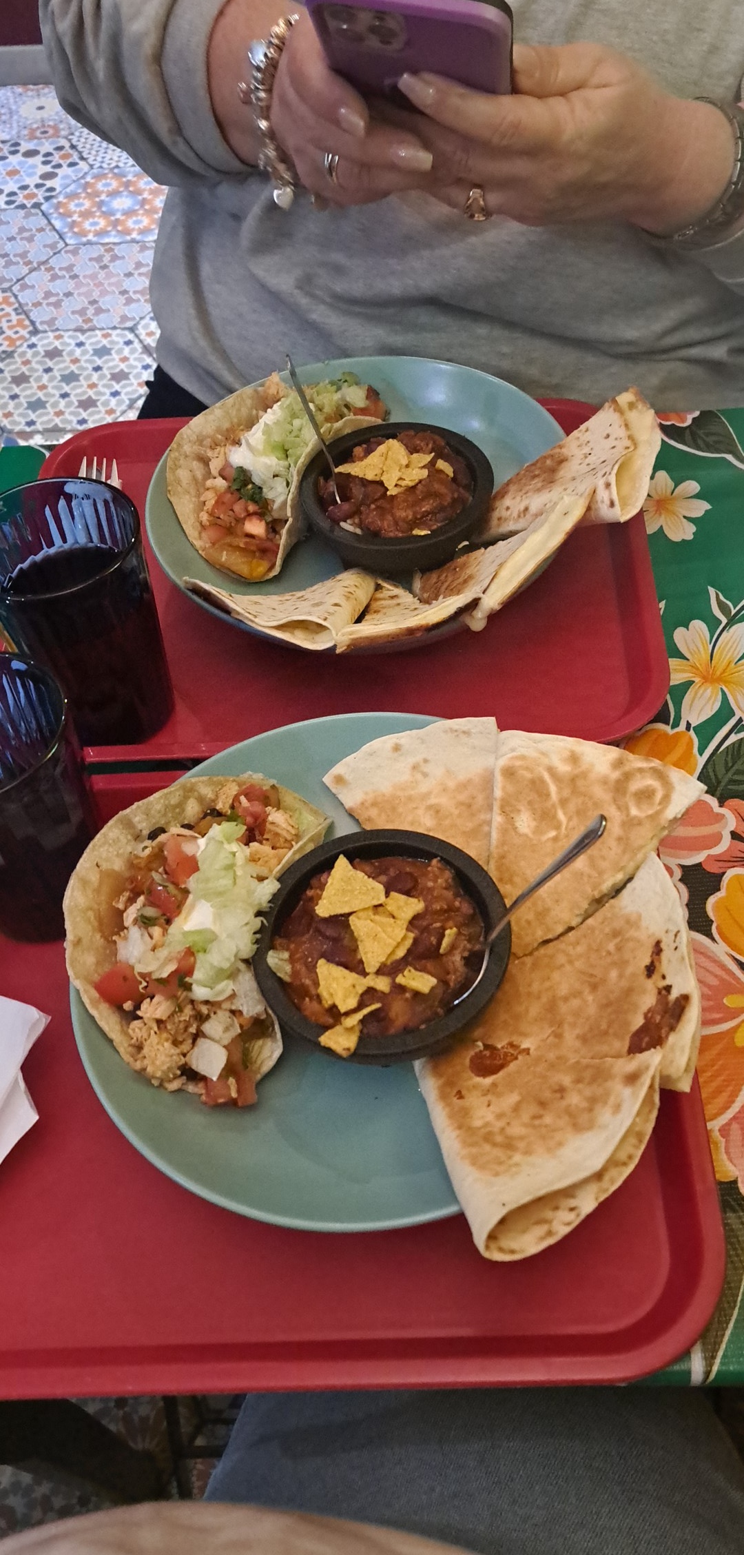 La verdad, la comida es mala, es seca y cara. Pedimos unos tacos y no tenían sabor ni nada que no nos hubiera podido quedar mejor en la casa. Les falta mejorar mucho la calidad. El servicio ok. Tbh I didn't like at all. I had the feeling of eating something that I could prepare times better at home but more expensive. The tacos were dry, no particular flavour, honestly like if it was prepared at home for someone who doesn't know how to cook. I don't recommend it. Pour être honnête, j'étais très déçue (et mes amis aussi). Nous avons l'impression de manger des trucs qu'on aurait pu faire beaucoup mieux chez nous (et nous ne sommes pas doués) pas de goût, secs, chers, je ne retournerai pas et je ne le recommande pas, il n'avait pas un goût moyennement mexicain, rien.