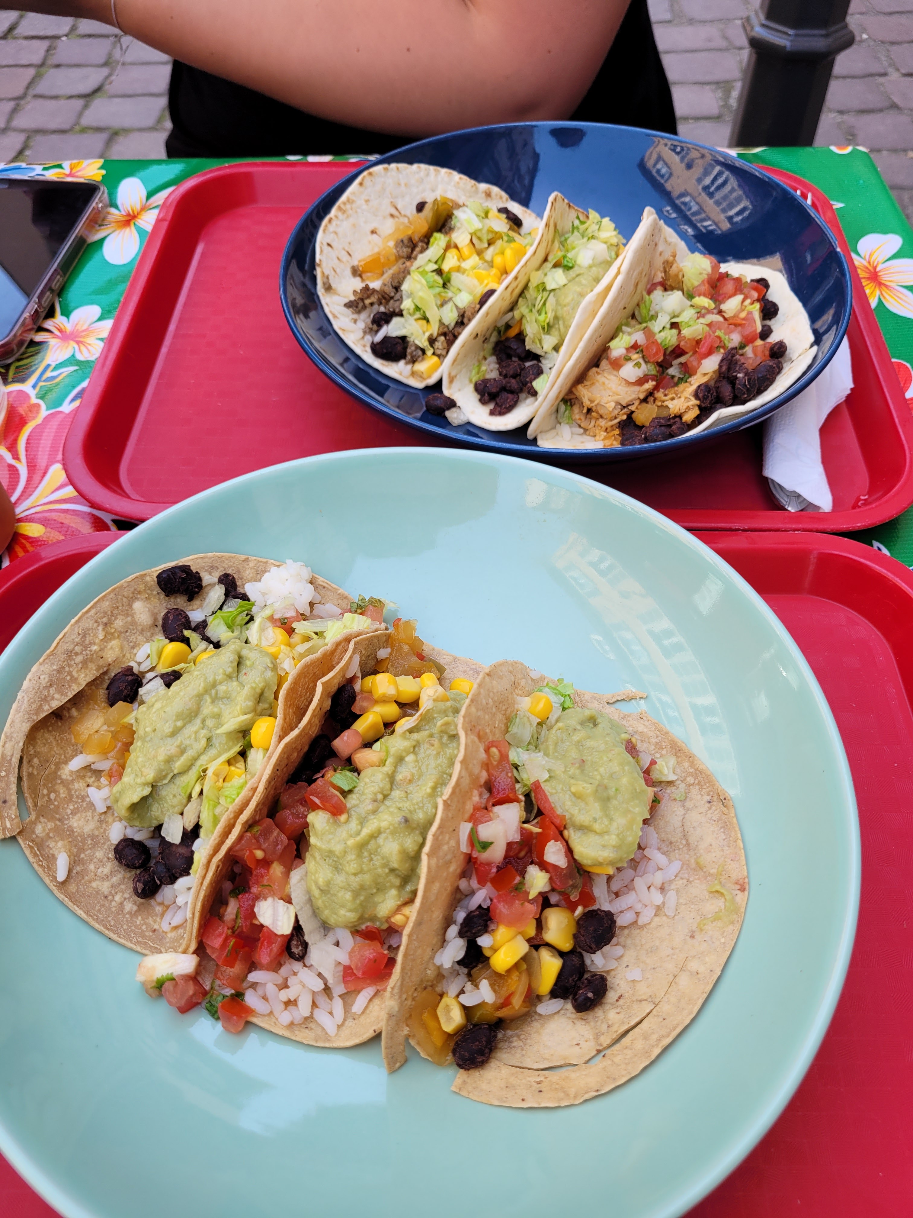 Fade! Aucun assaisonnement, fade! (Et pas très propre) galettes industrielles directement sorties du paquet qu’on trouve au super marcher elle étaient molles et ont craquées avec la garniture (salade servie directement à la main sans gants et sans s’être lavé les mains avant) 3 tacos, 3 viandes différentes… toute le même goût! Rien de très authentique. Il ne suffit pas de mettre du maïs , des haricots rouges et de la viande avec un peu de yaourt dans une galette pour dire qu’on fait de la cuisine mexicaine. Bref je n’y retournerai pas.