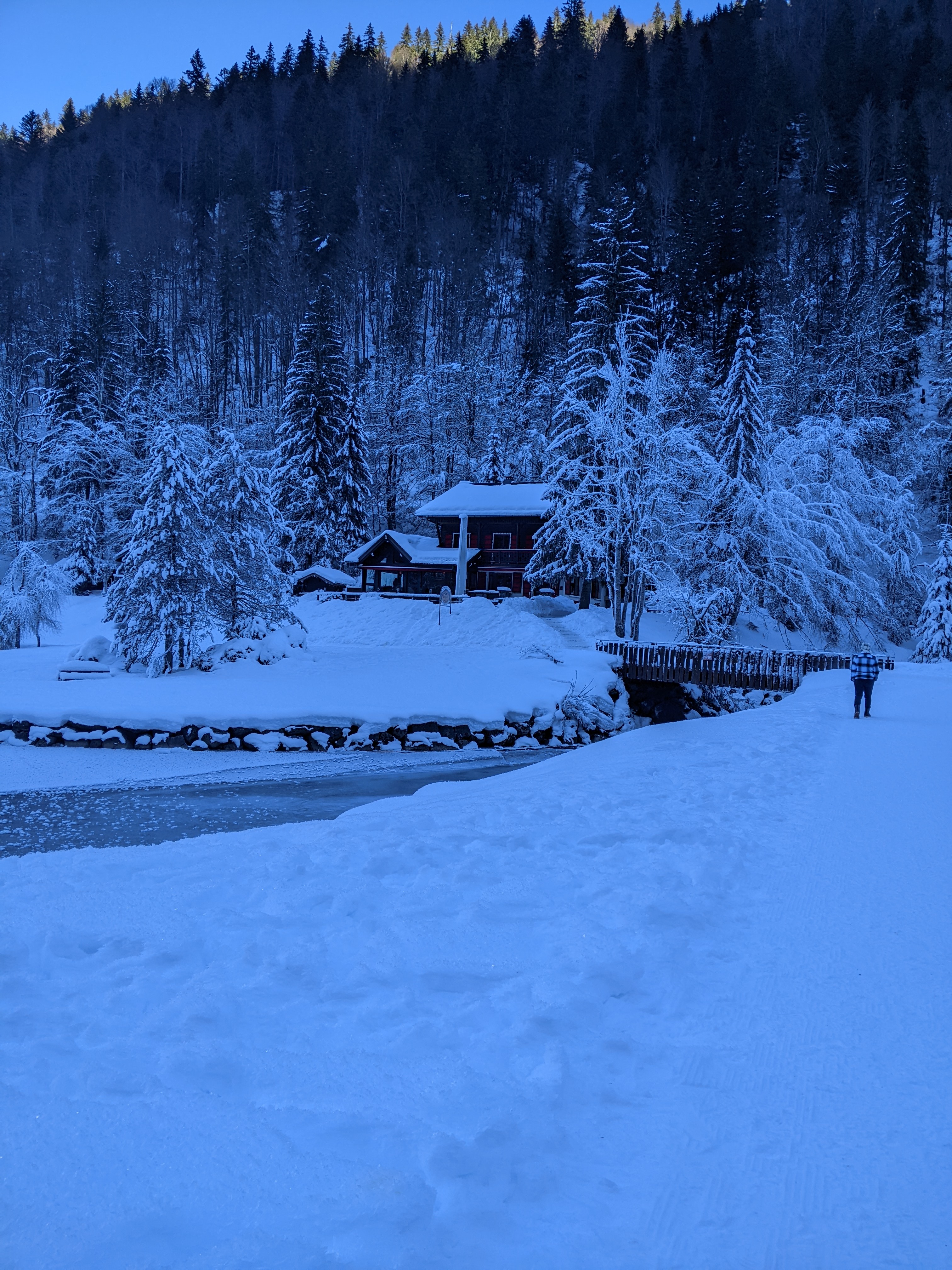 Très belle réhabilitation d’une ancienne cabane à l’entrée du lac de Montriond. Nous en avons profité pour se restaurer de crêpes 🥞 nutella et crêpes Suzette et chocolat chaud après une belle balade autour du lac gelé ! Un accueil sympathique. Un espace intérieur et une joli terrasse avec des couvertures pour nous tenir au chaud. Nous y sommes retournés hier après une très belle balade autour du lac de Montriond magnifique sous la ❄️. Les crêpes sont toujours aussi bonnes, chocolat viennois....