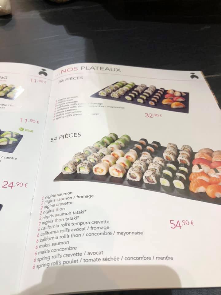 On a pris à emporté et c'était prêt avant le délais annonce Le rapport qualité prix est ok Les sushi sont tout à fait correct Mais restent à la française c'est à dire des variations qu'on trouve qu'ici et non au Japon ( j'ai eu la chance ou peut être mal chance de goûter des sushi là-bas et ça n'a rien avoir avec ce qu'on trouve ici...). Mais dans l'ensemble c'était bien