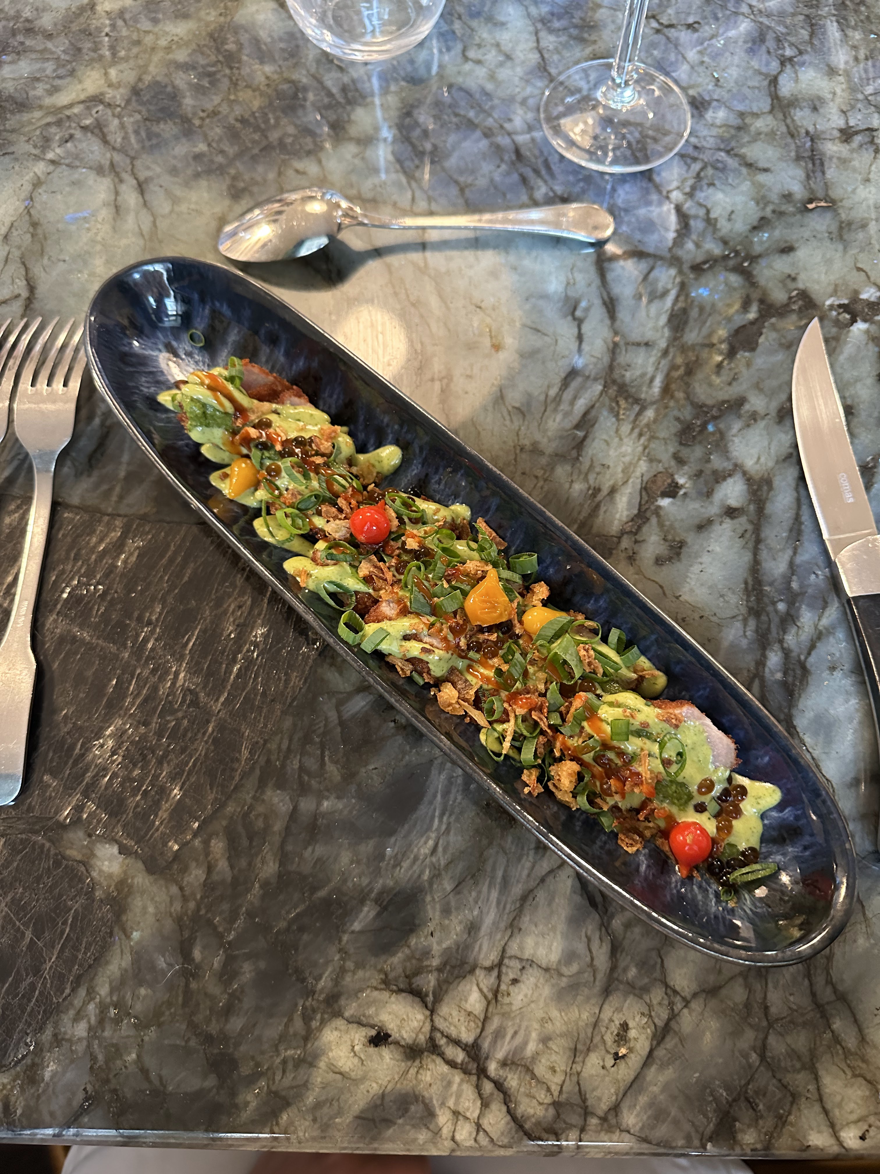 Restaurant de qualité, bien qu'assez intime. J'avais quelques craintes en voyant le menu qui manque de choix, et la décoration mi streetwear mi versaillaise. Mais la cuisine m'a vite rassuré. Service un peu long, serveur qui n'ont pas forcément les codes. Je regrette tout de même le manque de viandes d'origines françaises pour les viandes maturées. Je conseille tout de même ce restaurant qui vaut son coût, car les cuisines fusionnent avec brio plusieurs saveurs très différentes.