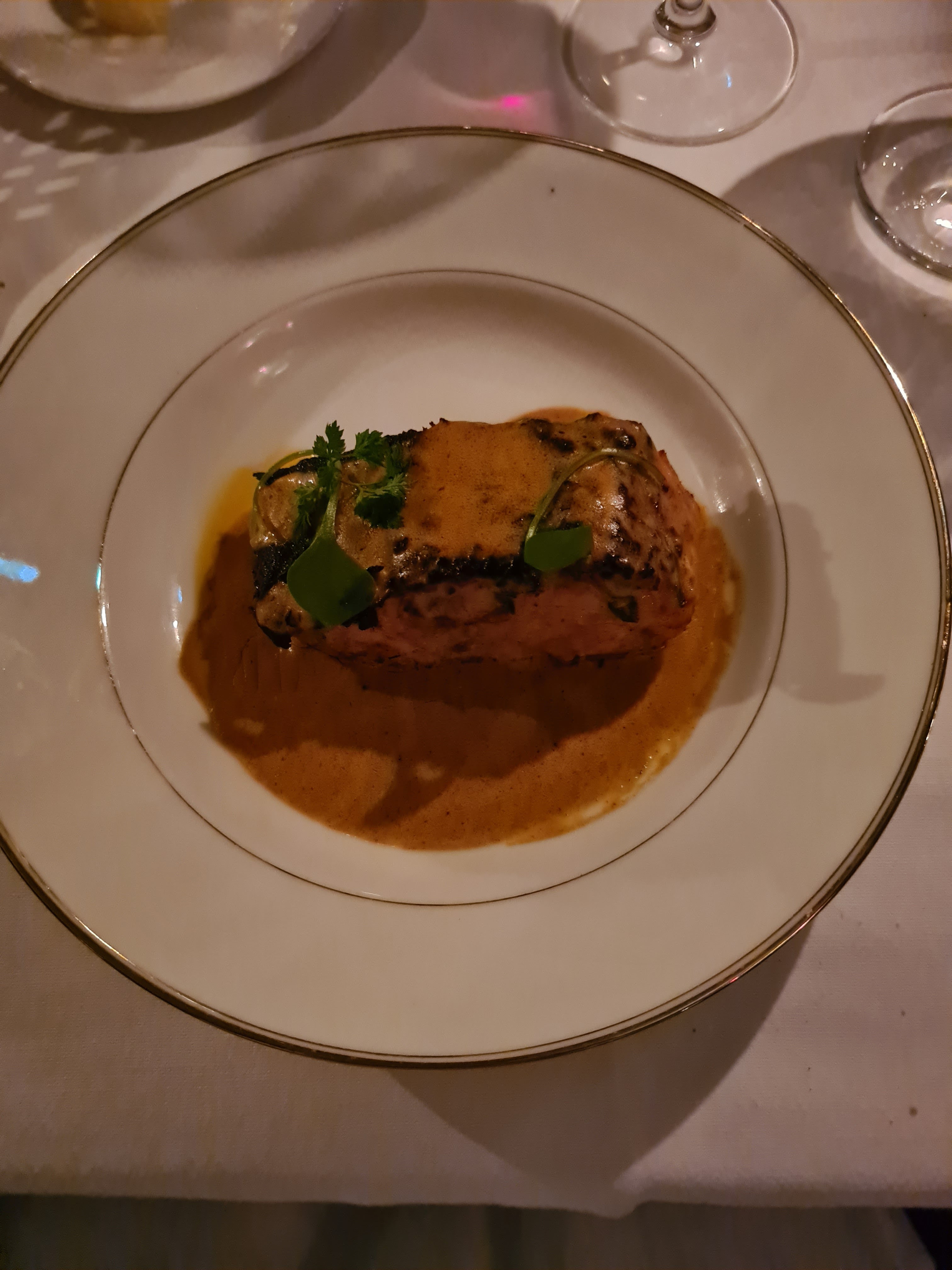 Magnifique cadre. Enchanté par cette soirée, nous étions trois et avons été particulièrement bien conseillés tout au long du repas. Mention au sommelier pour ses recommandations. Nous reviendrons vite !