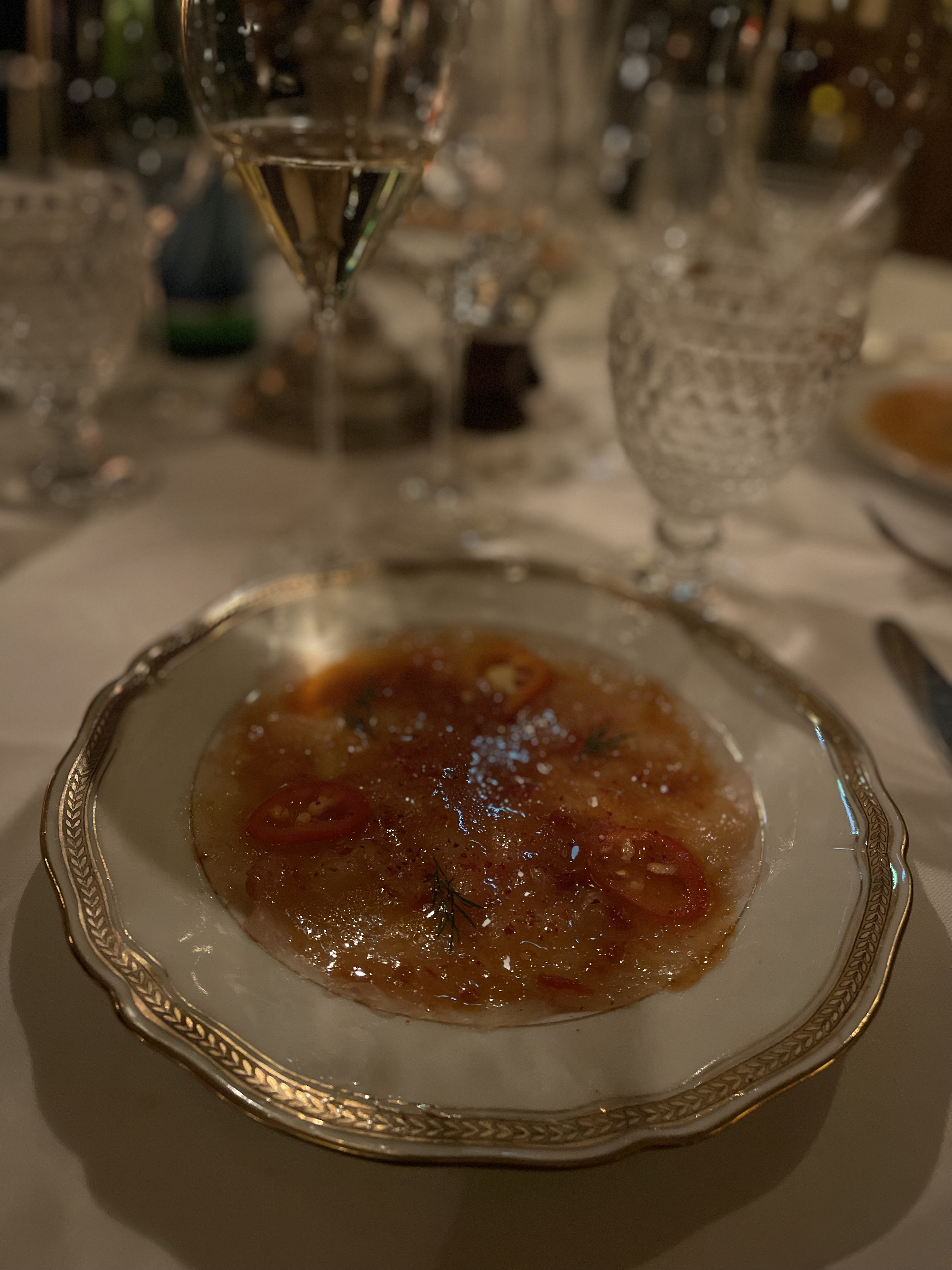 Notre expérience au restaurant a été véritablement magique, transportant nos sens dans un cadre féerique. Les tableaux artistiques créaient une atmosphère chic et captivante, ajoutant une touche de sophistication à notre soirée. Une mention spéciale doit être faite au sommelier Mr Raul qui a transformé notre repas en une aventure vinicole exceptionnelle. Sa passion était palpable, nous guidant à travers une visite immersive de la cave à vin. Les découvertes gustatives qu'il nous a offertes avec des vins d'une finesse rare ont véritablement enrichi notre expérience culinaire. Un lieu où l'art de la cuisine rencontre l'art visuel, offrant une escapade gastronomique inoubliable.