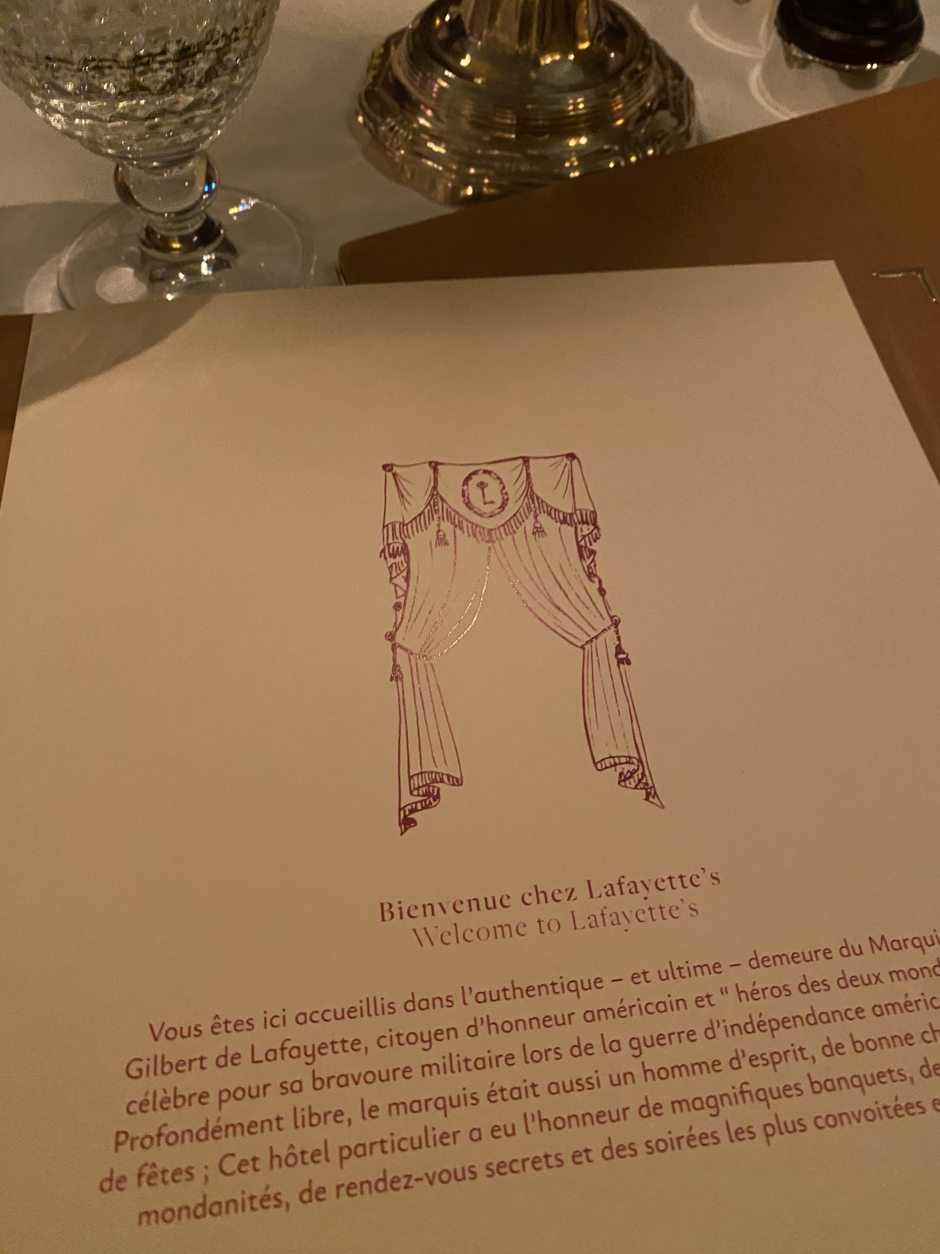 Le Marquis De Lafayette doit se retourner dans sa tombe ! Un lieu historique et magnifique pour une Médiocre expérience de l’accueil au dessert. Comment un chef réputé peut associer son image avec un établissement pareil qui se dit « brasserie chic » où nous avions réservé il y’a 2 mois pour 4 personnes. 1/ ACCUEIL : nous sommes accueillis par une hôtesse grossière, non professionnelle, et malpolie : - GROSSIÈRE, quand nous expliquons que cette table positionnée en entrée de salle, dans le passage, dans le courant d’air de la porte d’entré et à l’évidence ajoutée à la dernière minute n’est pas acceptable. cette personne Très imbue d’elle même, nous répond : je sais c’est très « chiant ». - NON PROFESSIONNELLE, nous répétant 3 fois, « j’ai une autre table de 4 mais cette table est réservée par la famille Proprietaire de l’établissement ». Sachez Madame, qu’un propriétaire d’établissement cherche d’abord à servir et satisfaire ses clients avant lui même. - MALPOLIE, quand nous demandons au serveur, étant placé en plein dans le courant d’air, s’il serait possible d’avoir pour nos épouses 2 plaides, l’hôtesse d’accueil qui n’avait rien à faire là, cachée en embuscade à moins de 1 mètre derrière nous, dit à sa collègue à haute voie, « les plaides c’est pour les terrasses ». 2/ LA CUISINE : bonne mais sans intérêt. La pâte en croûte quelconque, Le bar bien cuit mais très mal desarreté, un riz sec comme le sable, le suprême de volaille et le curry correct sans plus, le chou en dessert a éviter. Bref, déçu. 3/ LE SERVICE: personnel gentil mais totalement désorganisé manquant à l’évidence d’un sérieux management.