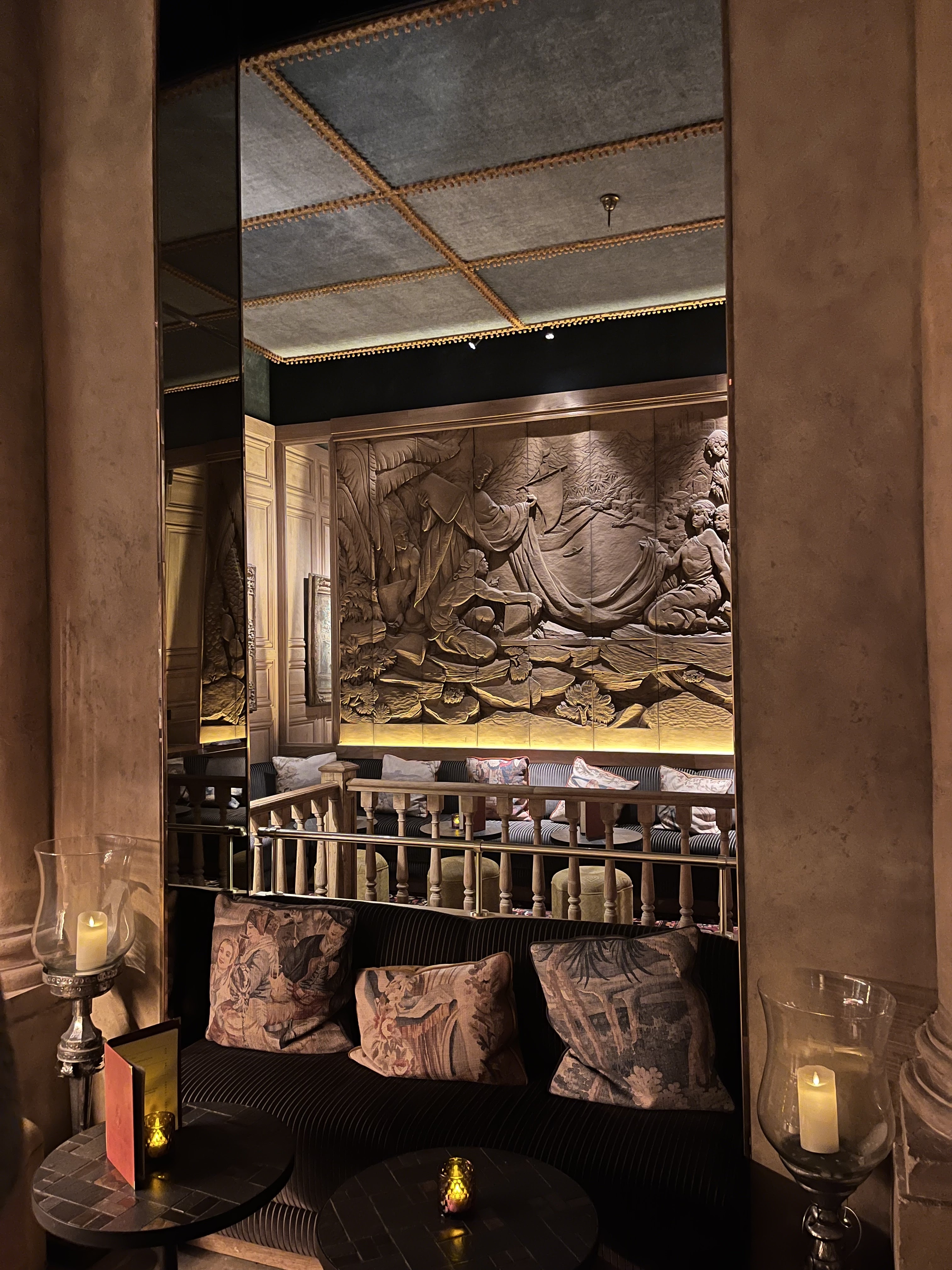 Un restaurant magnifique, un décors sublime. Dans les salons privés nous sommes dans un coin très intime, baroque et chargé. Très classe. En revanche un service un peu trop lent à mon goût, il faut être patient. Les prix coïncident avec l'endroit.