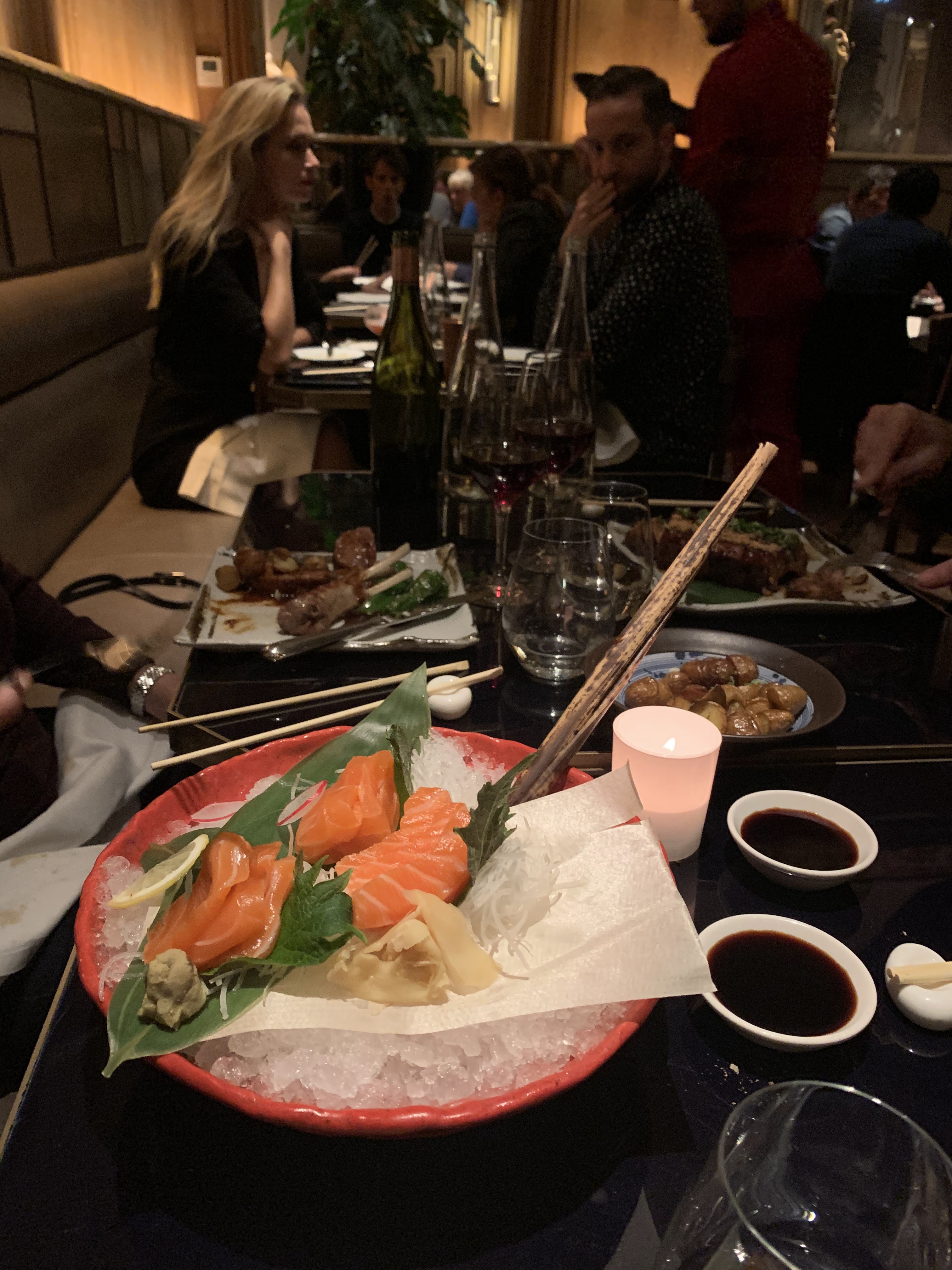 Endroit somptueux qui pourrait être à la hauteur de belles occasions, si les plats proposés étaient de fait disponibles. Nous avons voulu commandé un steak façon robata (généralement un classique dans les restaurants japonais haut de gamme), mais il n'était plus disponible, à 21h15 environ. Notre serveur nous a dit qu'une large table avait commandé les derniers juste avant tout. Pour les desserts, notre serveur nous informe, au moment de la commande ici aussi, que les 3/4 ne sont plus disponibles, une fois de plus en raison de cette grande table. Il ne restait plus que des glaces. Il y a un souci tant sur le fond (le fait qu'un restaurant à moitié vide un mardi soir ne puisse proposer qu'une partie de sa carte) que sur la forme (le fait de dire explicitement que la faute appartient à d'autres clients, qui bénéficient d'une meilleure expérience, et le fait de ne pas proposer proactivement ces plats avant qu'ils ne soient épuisés). Finalement, ni geste face à cette situation, ni même de remerciement ou de signe de reconnaissance de notre serveur pour notre pourboire de 4 euros qui, compte tenu de notre expérience, était plutôt généreux.