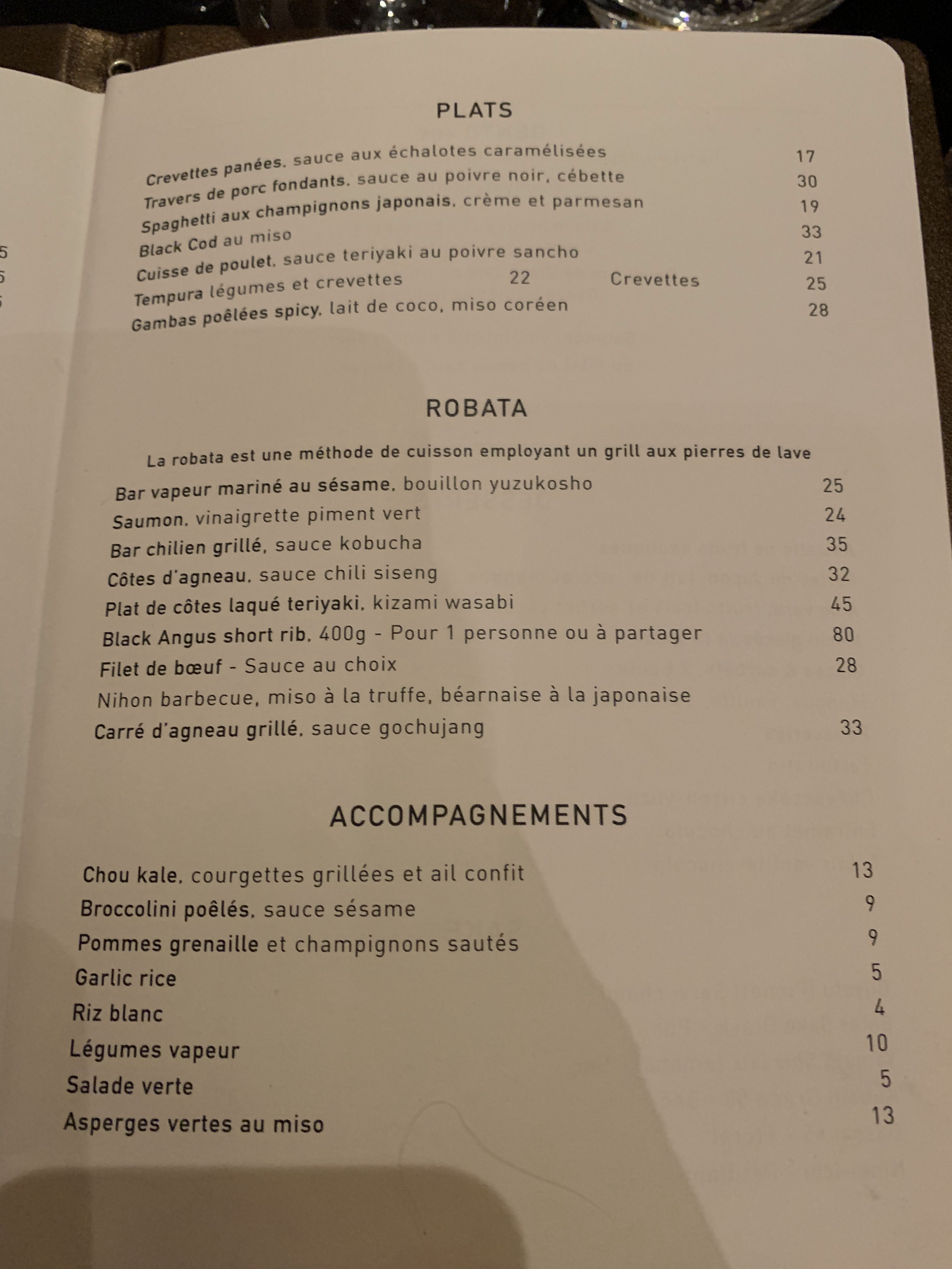 Restaurant plus branché que gastronomique Excellent accueil, service très professionnel, décoration superbement réussie à mon goût, mais petite déception dans l’assiette: gyozas frits ?! Carpaccio de yellow tail excellent mais portion chiche, riz croustillant trop frit donc collant en bouche avec un excellent tartare, tempura de légumes aériennes, travers de porc bien trop ailées ou en tout cas le mélange ail cru et poivre vert trop marqué, pourtant j’aime ces 2 ingrédients, mais cuisson basse température rosée intéressante. Carte des vins équilibrée avec des millésimes très récents. Bref sans que ça soit péjoratif, c’est un établissement plus branché que gastronomique