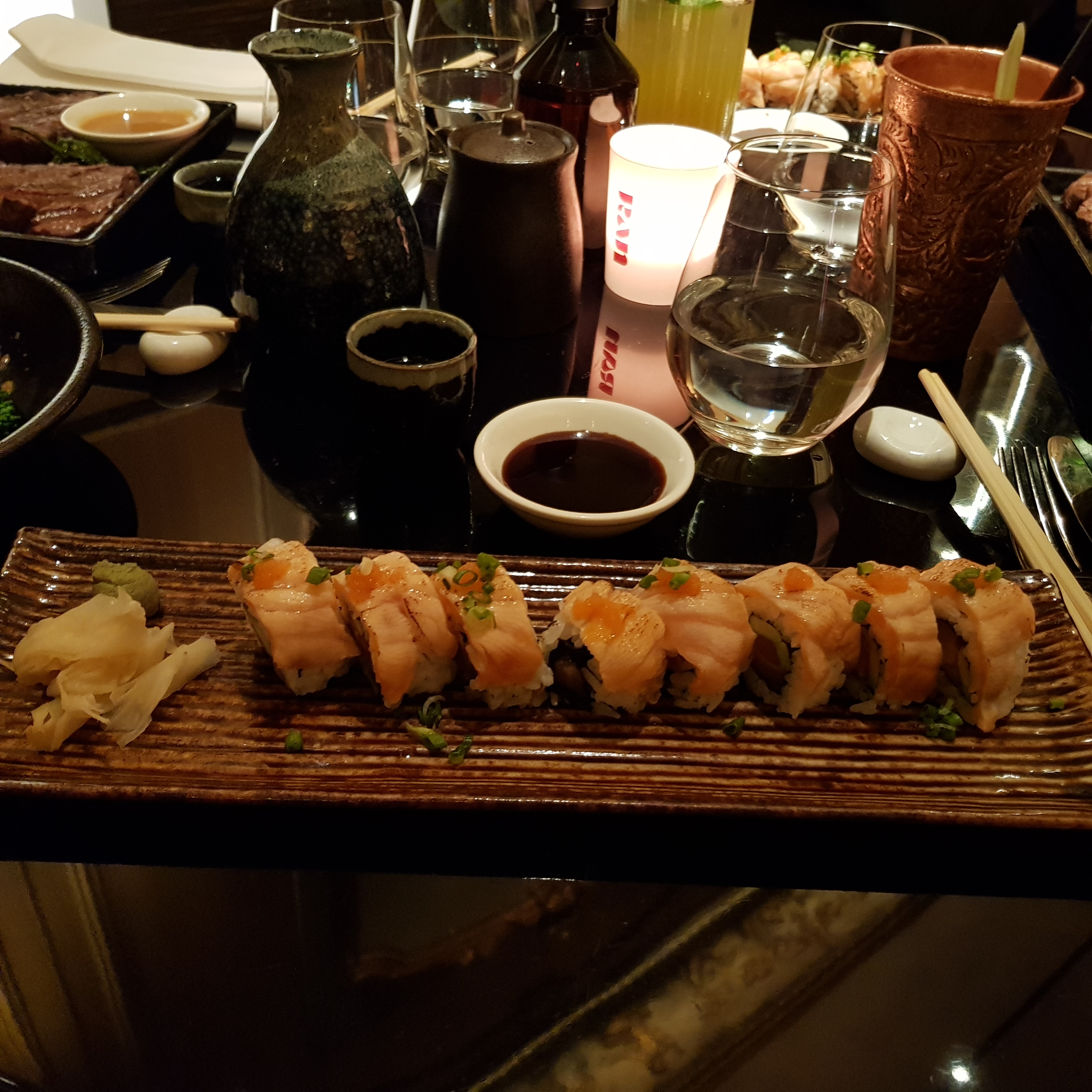 Très bel endroit ambiance feutrée personnel au petit soin le seul bémol je trouve quil y avait un peu trop d'huile dans la salade japonaise et les tempura de légumes n'étaient pas assez cuits. Sinon le dj est bon et le niveau sonore parfait. Je recommande