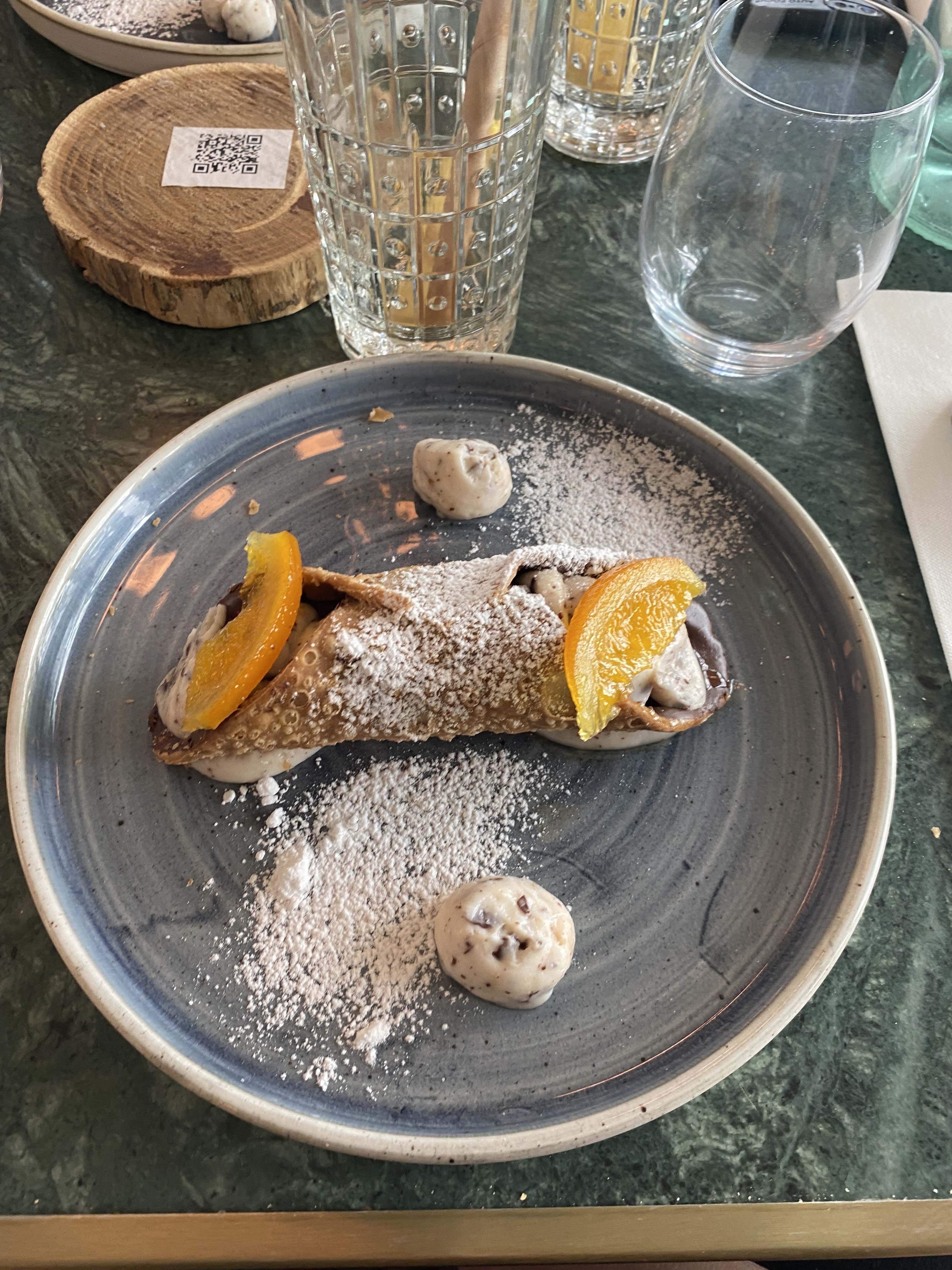 Accueil chaleureux dans ce restaurant au calme et en retrait, petite véranda donnant sur le jardin et le potager. Côté cuisine, tout est excellent. La cuisson au barbecue apporte un vrai plus (et en bon sudiste, je m’y connais donc les attentes étaient élevées). Bref c’est une grande réussite. Si vous aimez le tiramisu, foncez sur le dessert signature de la maison. Mais si vous hésitez, allez sur le canollo siciliano. C’est le meilleur dessert que j’ai mangé depuis très, très longtemps. Une vraie merveille.