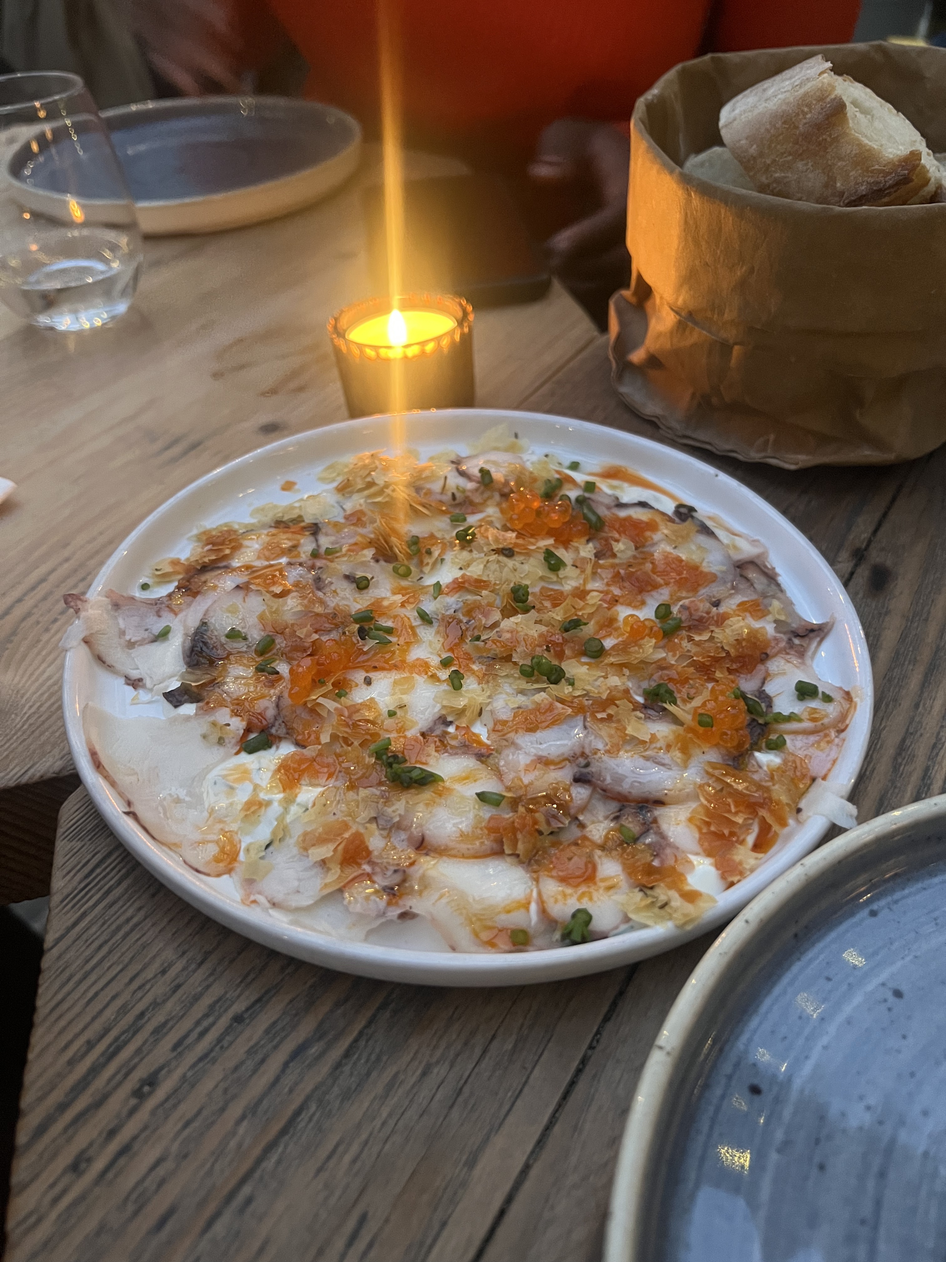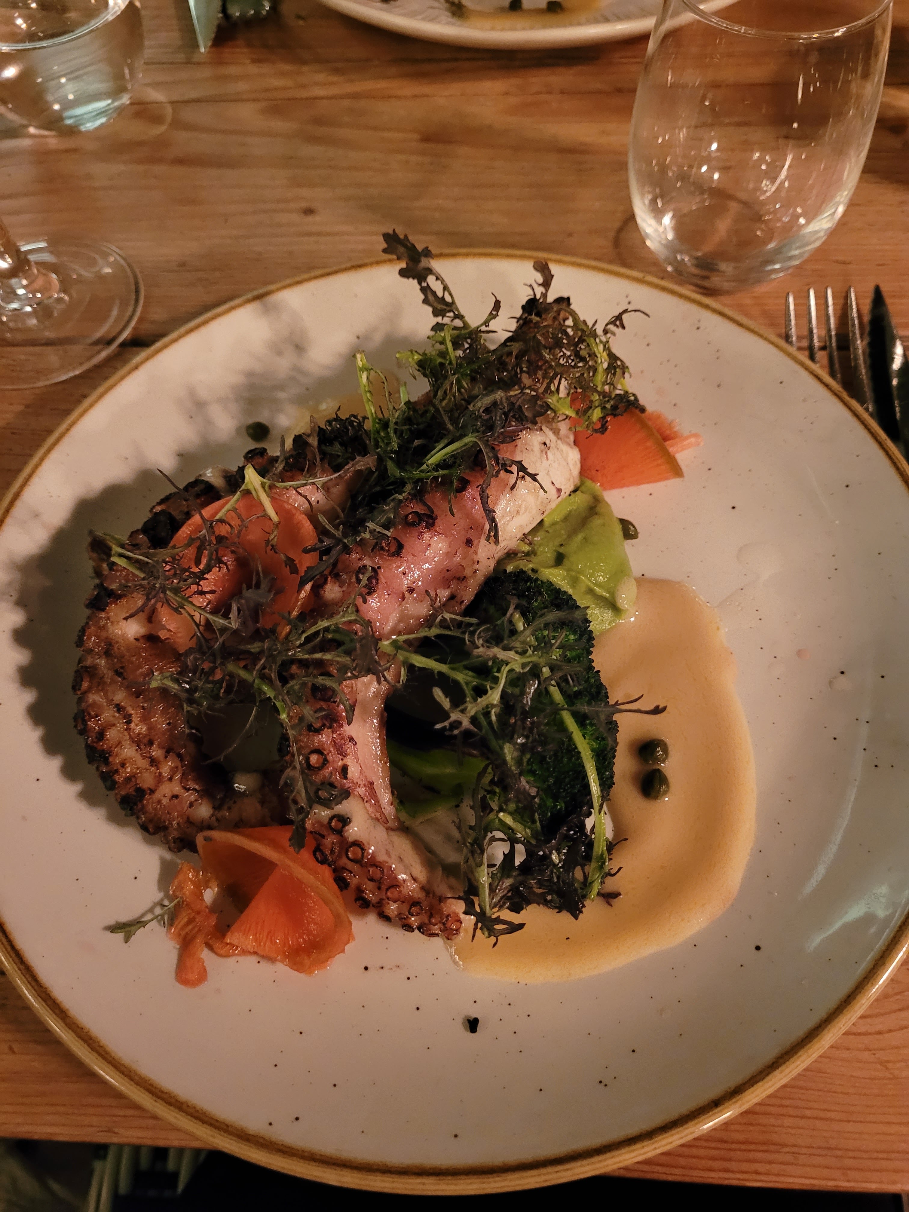 Quelle belle expérience! Tout était parfait! Nous avons pris des cocktails qui étaient originaux et très bons. Le plat d’octopus était délicieux et que dire de ce dessert. Je vous recommande vivement ce restaurant dans lequel le service est au top et la cuisine savoureuse.